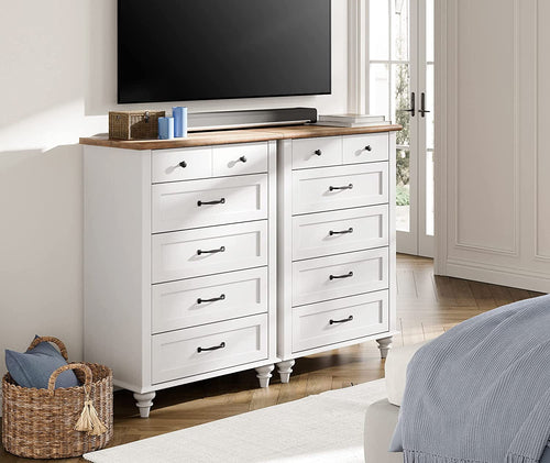 - 【Large Vertical Storage Space】Featuring 10 deep drawers, the white dresser is great to organize your clothes, blankets and other personal belongings. The large tabletop is perfect for displaying lamps, books, etc. The large dresser maximizes the vertical storage space while keeping your daily essentials and display decorations in order.