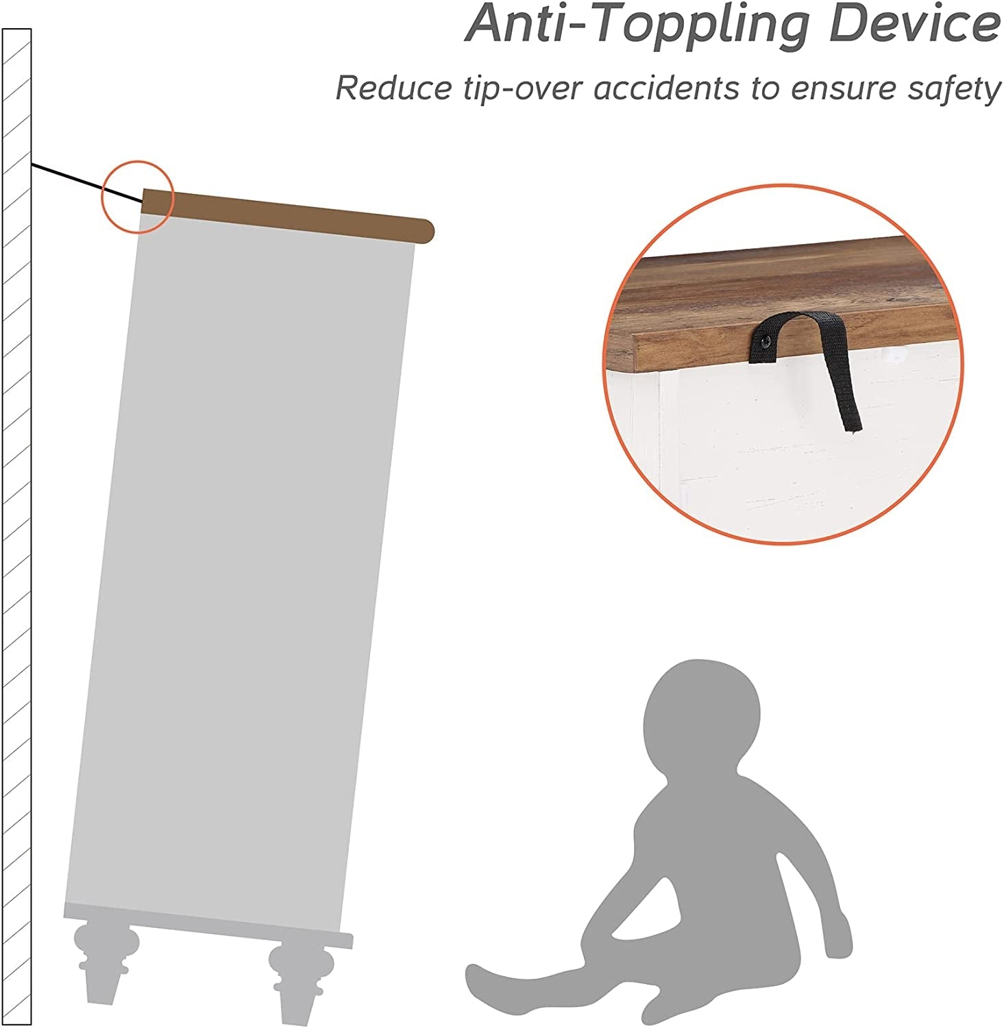 - 【Humanized Detail Design】Equipped with smooth metal drawer slides and handles, the drawers of the closet dresser are effortless to open and close. And the wood dresser is secured by anti-dropping device to reduce tip-over accident for more safety. It is worth mentioning that the distance between the bottom plate and the floor is large enough so that the robot vacuum cleaner can pass freely.