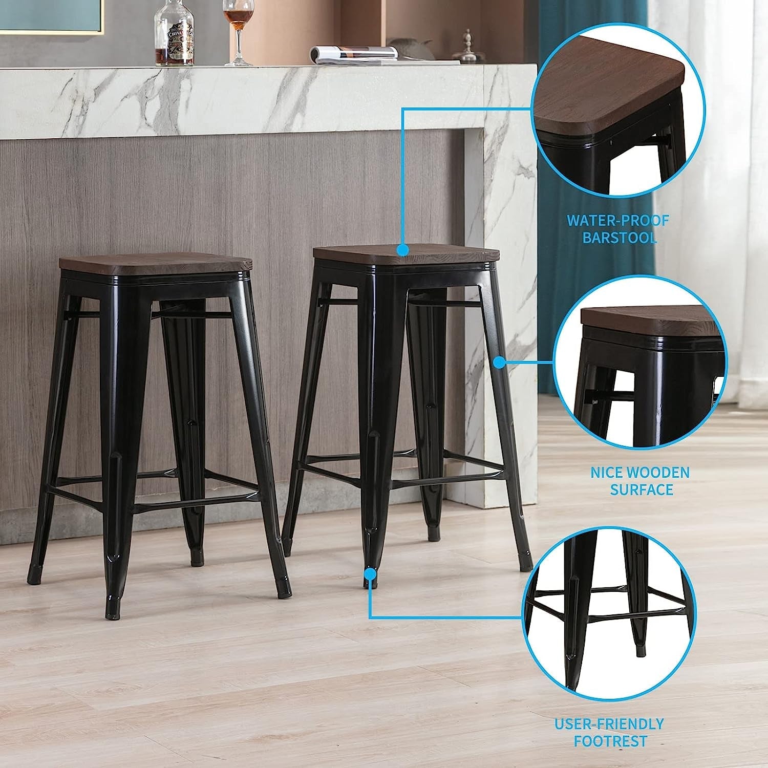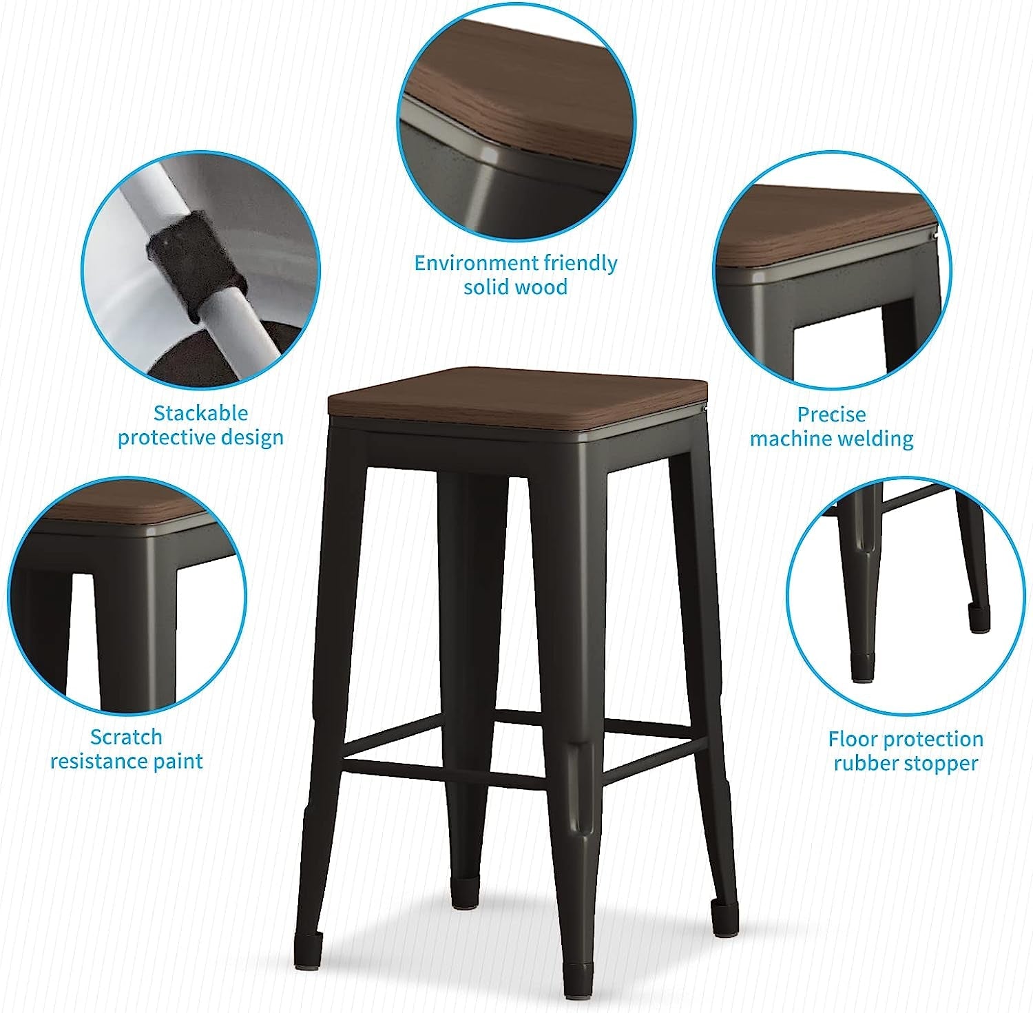 - ✔【Stackable & Convenient 】 Durable bar stools can be stacked and to save storage space when you don't need them.Each industrial bar stool table is the same size, and the feet are open to the outside, which is a special design to storage.