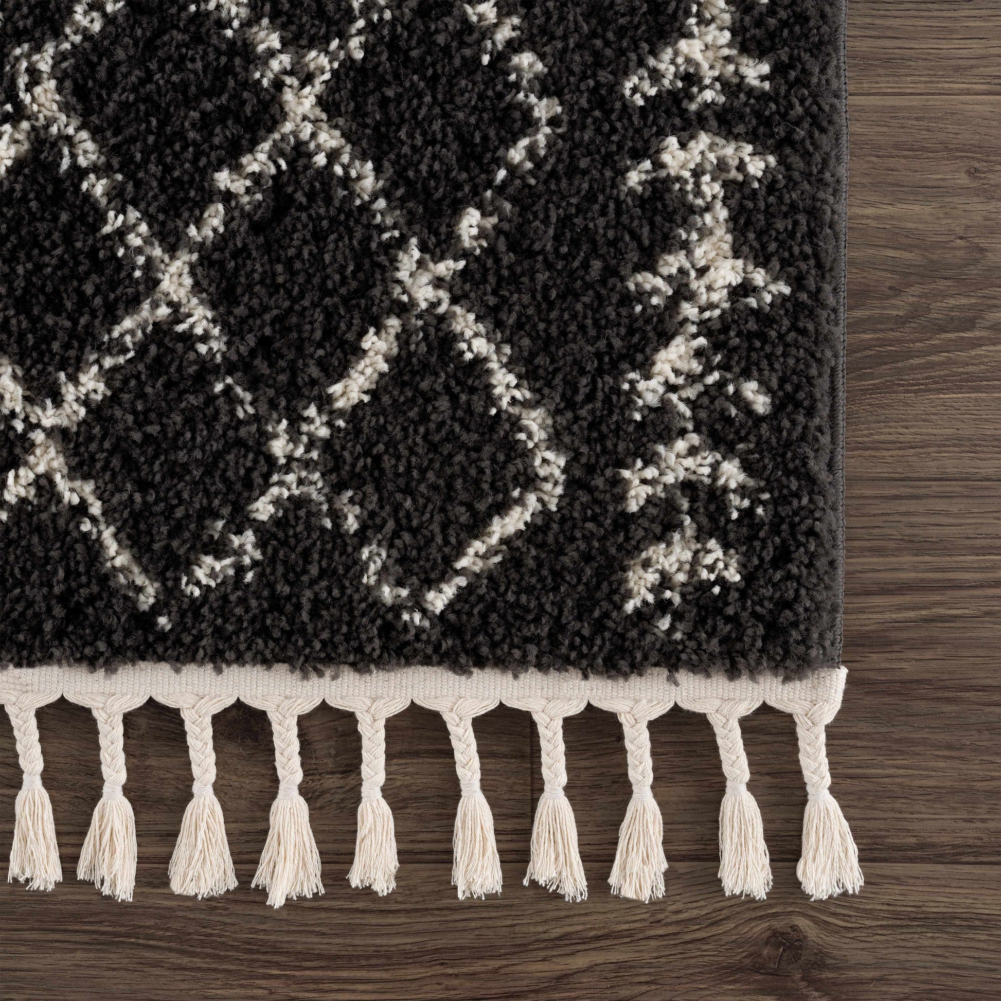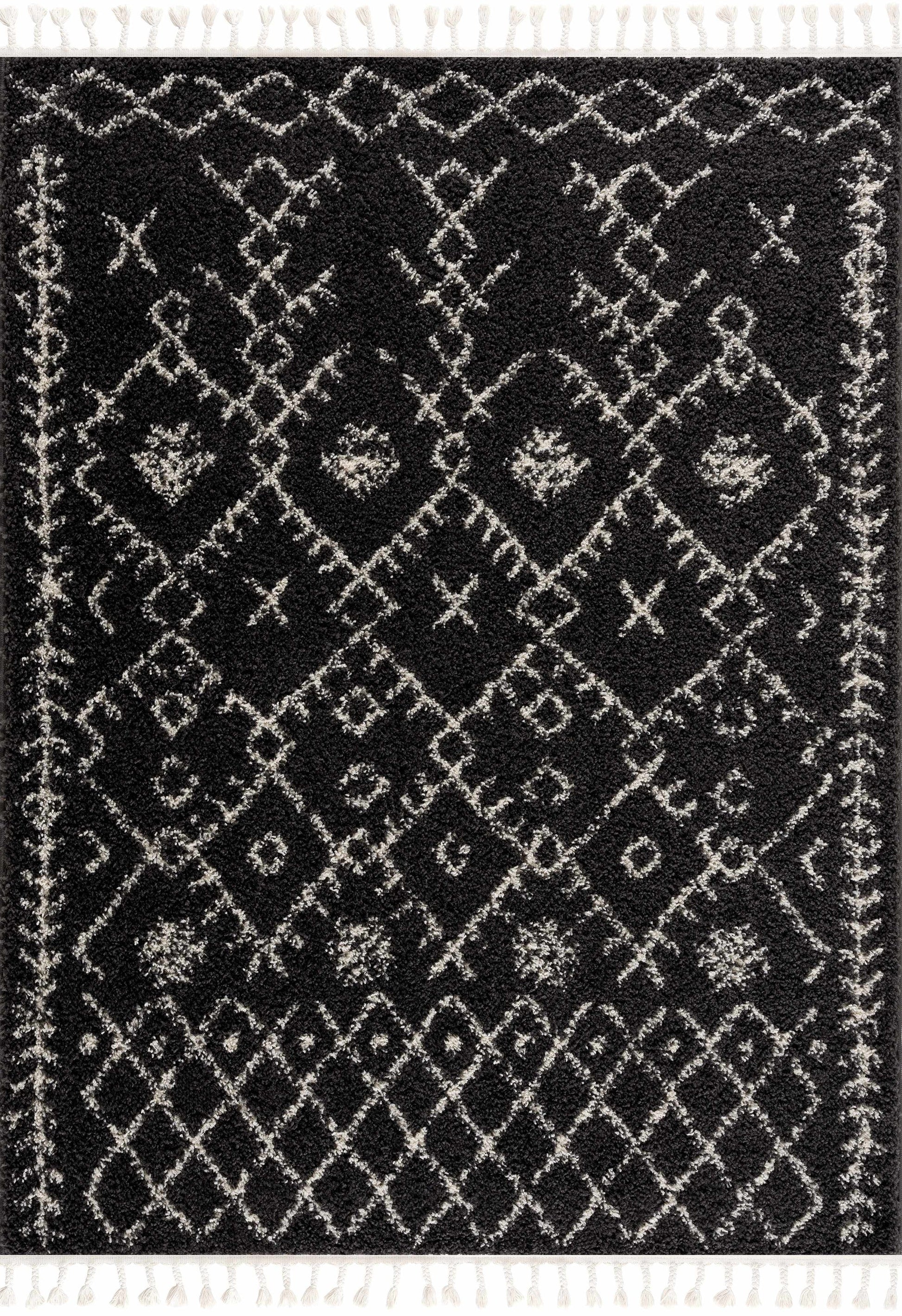 About: The Thetford Area Rug features a captivating Moroccan-inspired design in a bold black shag texture. This rug brings a touch of bohemian charm to your home, providing both warmth and style. Its soft, shaggy texture offers comfort underfoot, while the intricate pattern adds a trendy flair to modern or eclectic interiors. Perfect for bohemian-style homes, this rug is a versatile addition that complements any living space.