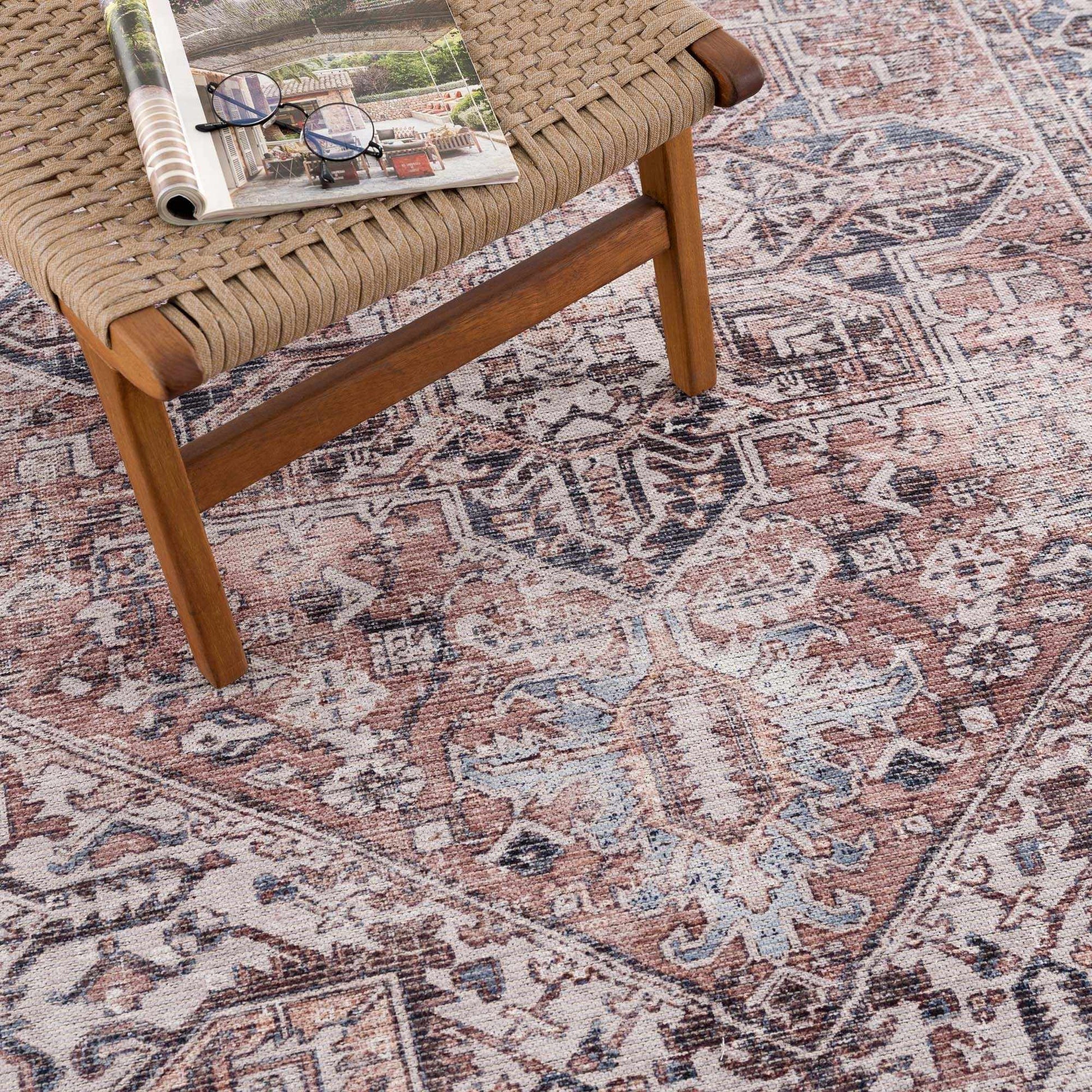 About: The Viho Washable Area Rug showcases a classic medallion pattern, blending traditional and vintage styles effortlessly. Made with durable materials, this washable rug offers long-lasting quality while being easy to maintain. Its timeless design adds elegance to any room, from living spaces to hallways. Perfect for those seeking a vintage-inspired aesthetic with the convenience of a washable and durable rug, the Viho rug is a versatile choice for any home.