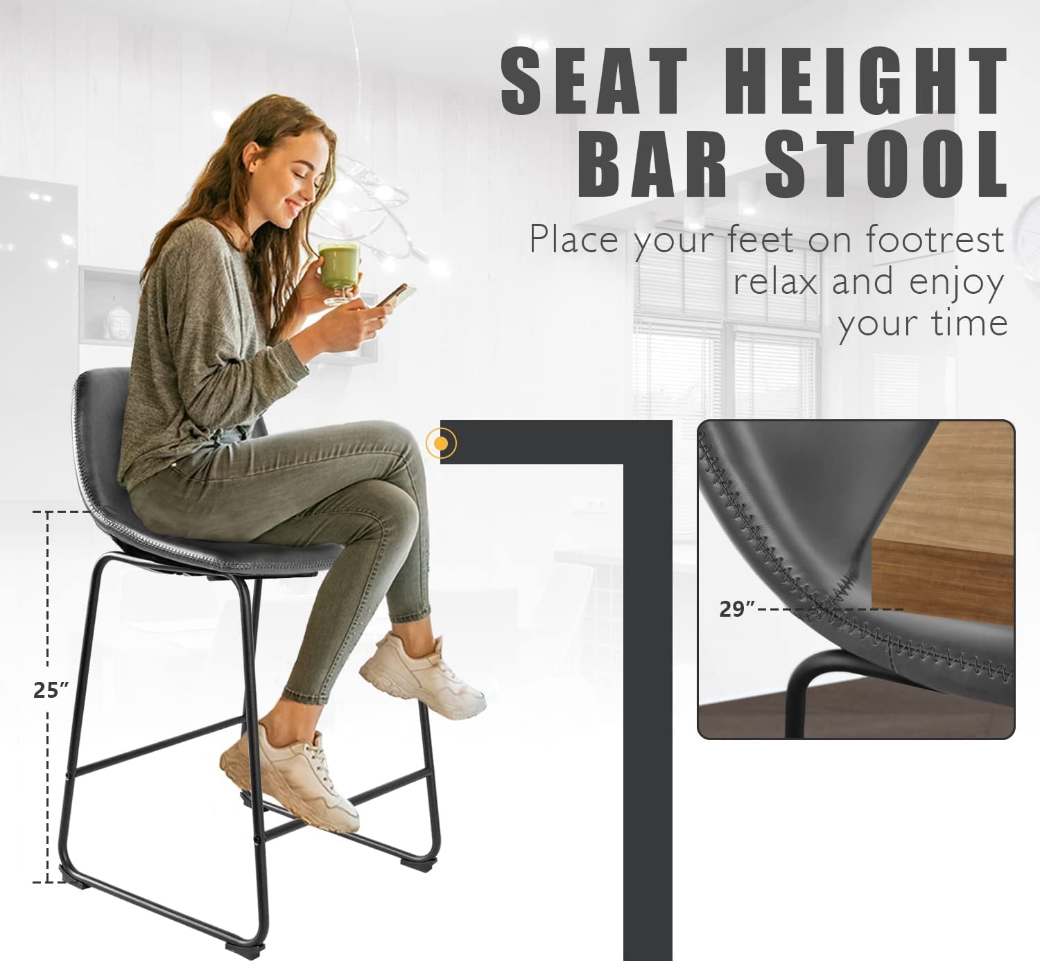 - ▶ COMFORTABLE TO SIT- The counter stools have a backrest and footrest rack help in keeping relaxed body posture and reducing the body pressure. Padded with high density foam and covered with PU leather, the island stools are also very comfortable and relaxed when sitting.