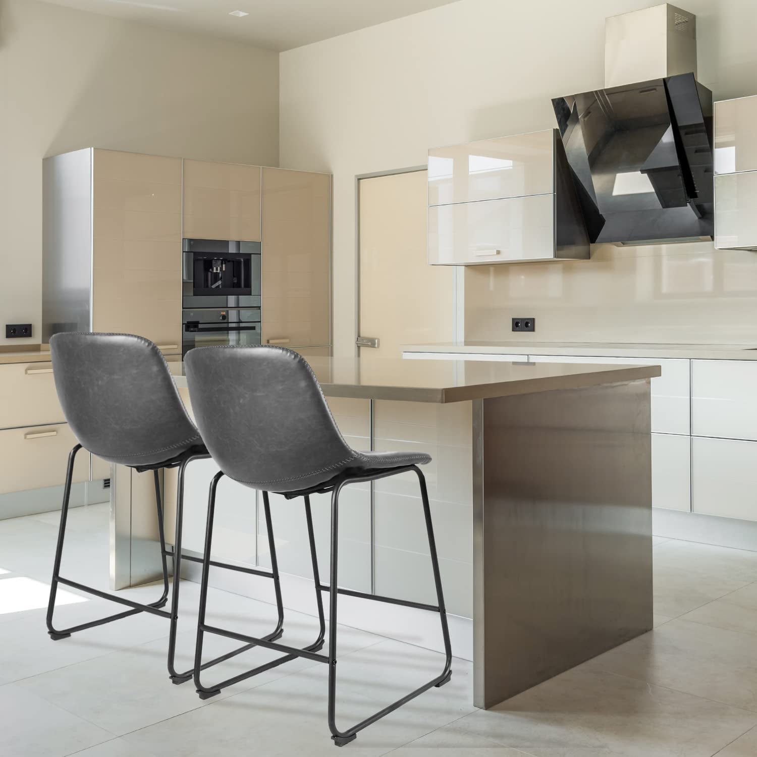 - ▶ EASY TO CLEAN AND ASSEMBLE - Both powder coated surface and leather seat are waterproofsurface, so easy to wipe clean with water. The assembly was pretty straight-forward and easy to do, only takes about 5 minutes per chair to put together. Our local service team will be helpful if any questions about these counter chairs.