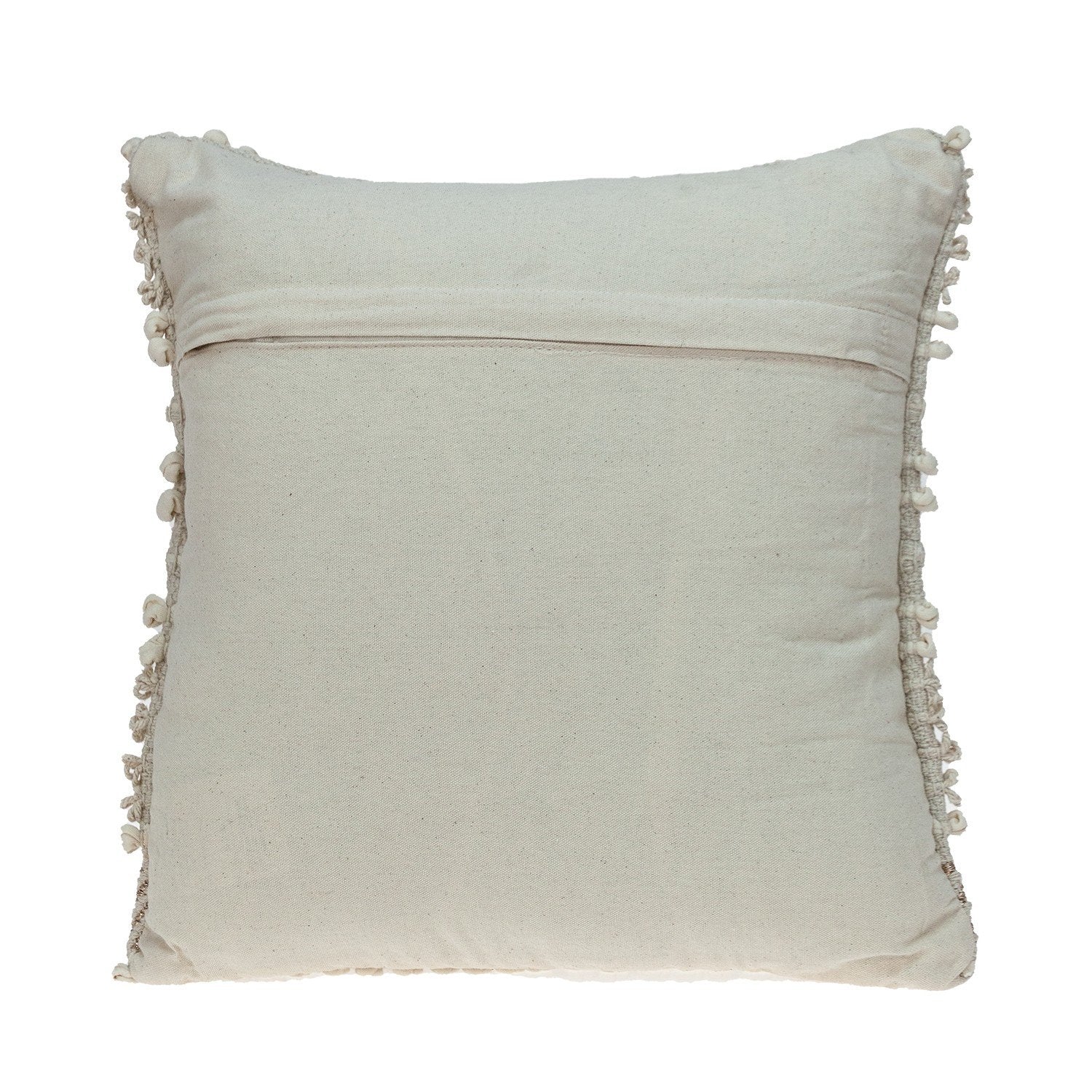 The Warm Ivory Chunky Throw Pillow will make you feel like you are enjoying the warmth of wearing your favorite sweater. The warm ivory color of the throw pillow exudes calmness and relaxation, and its hand woven pattern with numerous textures makes it an excellent decorative pillow. It has a zipper closure on the back for easy cleaning. 17.72â x 17.72â x 4â