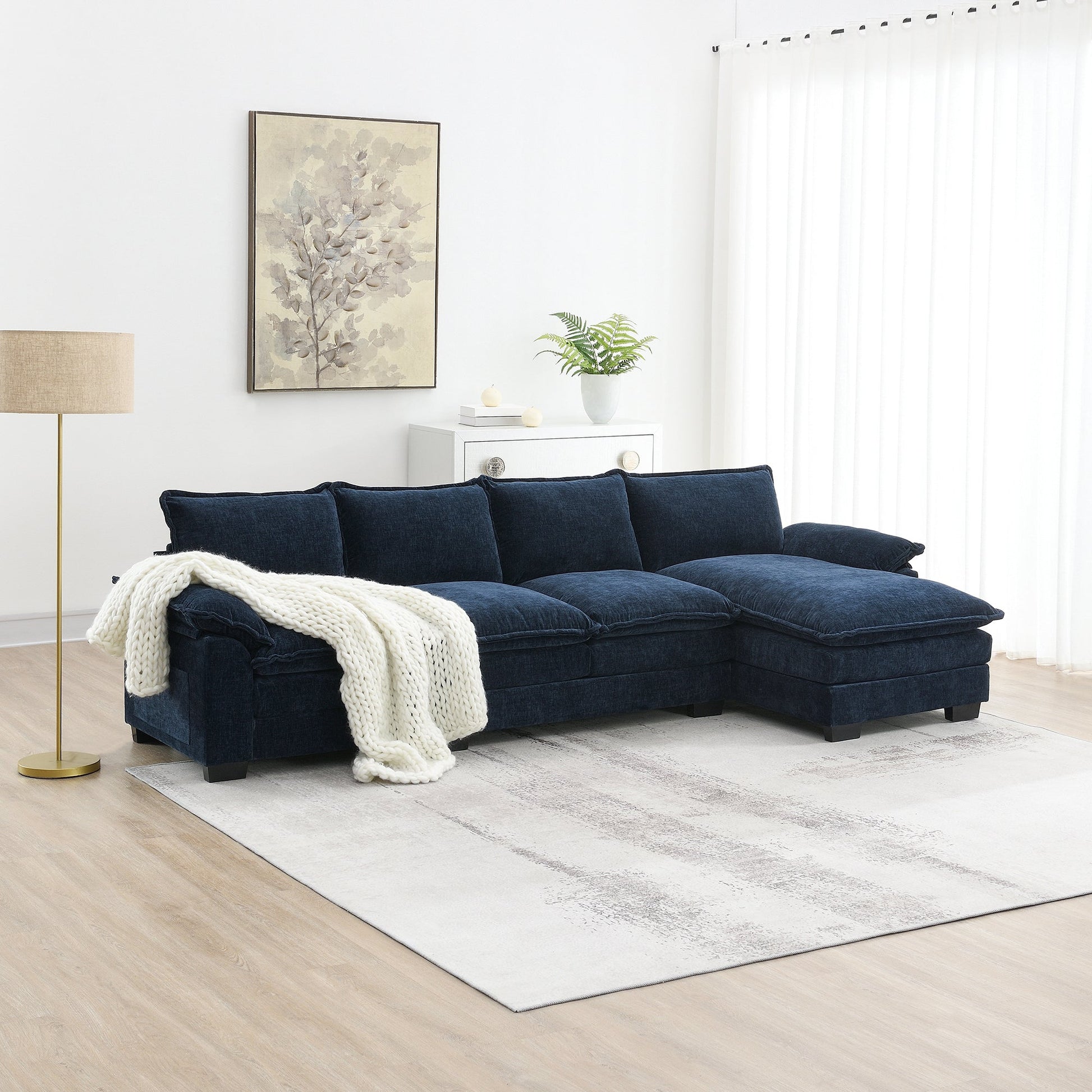 118*55" Modern L-shaped Chenille Cloud Sofa with Double Seat