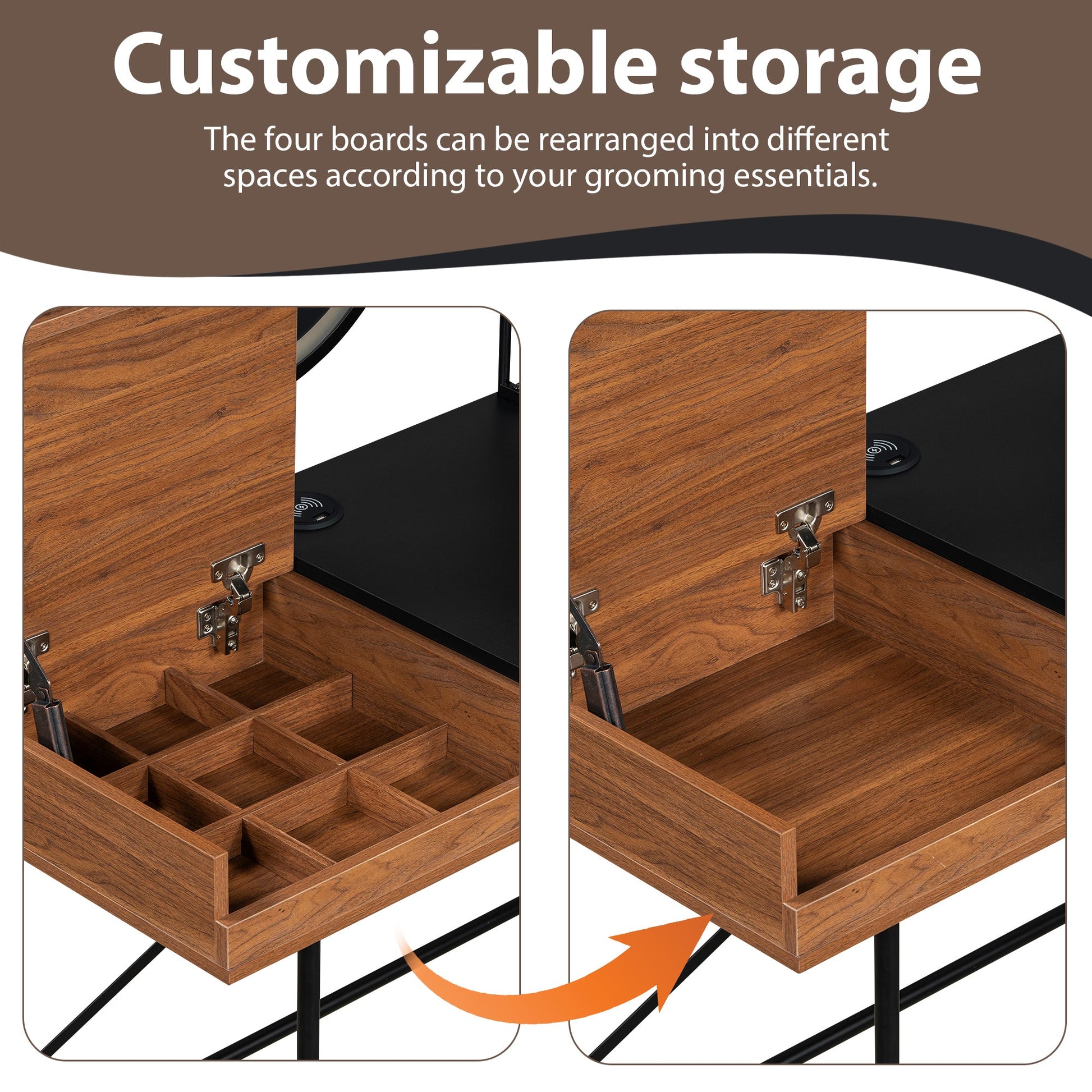 - Wireless Charging Station: Our vanity is furnished with wireless charging functionality and a USB port, making the charging process more convenient and effortless!