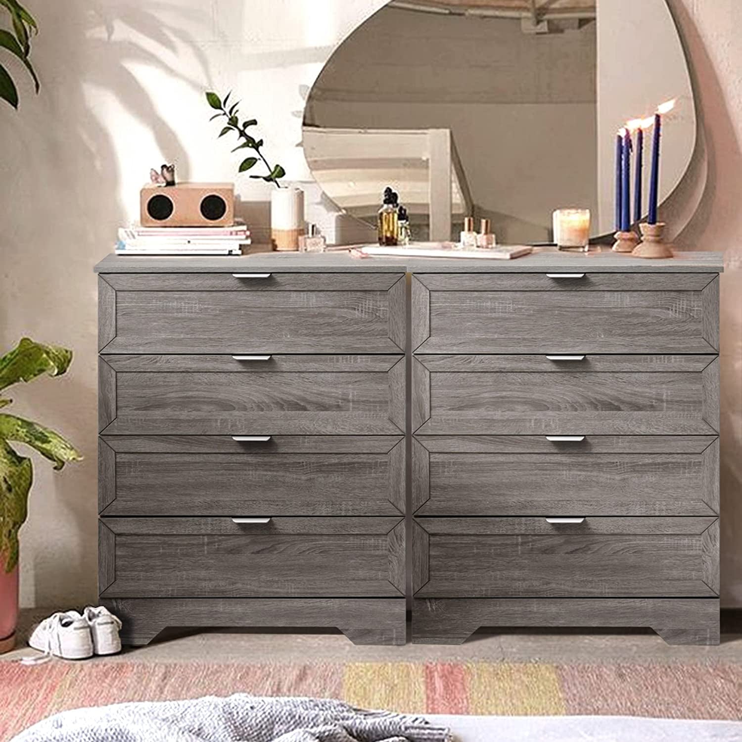- HIGH QUALITY-Drawer dresser is made of premium MDF wood, constructed with 4 drawers and an anti-topping device that is durable and safe for kids or pets. Overall environmental veneered in wash grey give the dresser a smooth touch, anti-scratch and water-resistant.
