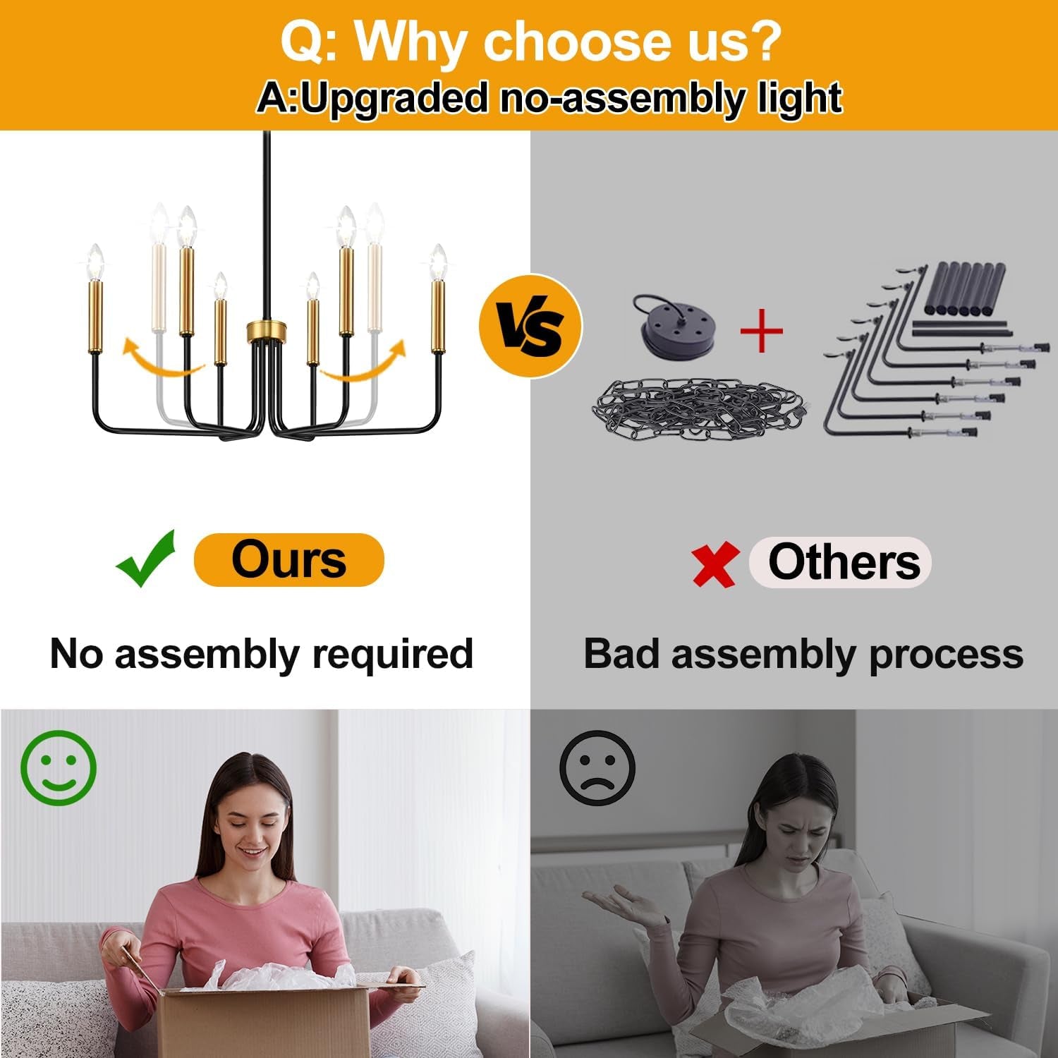 - No Assembly Required: This chandelier comes pre-assembled, making installation a breeze. Simply unfold the lamp arms to complete the setup.