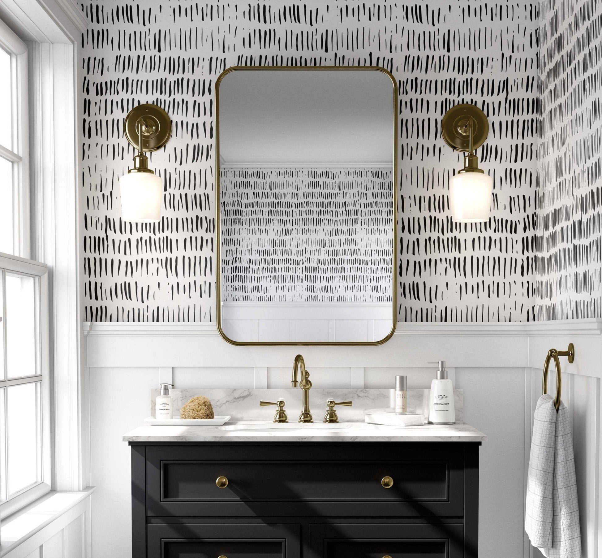 White and black Paint Strokes Wallpaper. This wallpaper brings the charm of the 90s to life with its cute and colorful retro abstract pattern. If you're a fan of the 90s aesthetic, this is the perfect addition to your home decor. This custom wallpaper makes it DIY-friendly and suitable for various craft projects. The smooth, flat wallcovering is ideal for temporary spaces and bookcases. It's not only visually appealing but also cleanable, ensuring it stays looking great for years to come. Embrace the 90s vibes with this unique wallpaper that combines nostalgia with a contemporary twist. It's an excellent choice to make a statement in your space or add a touch of retro charm to any room.