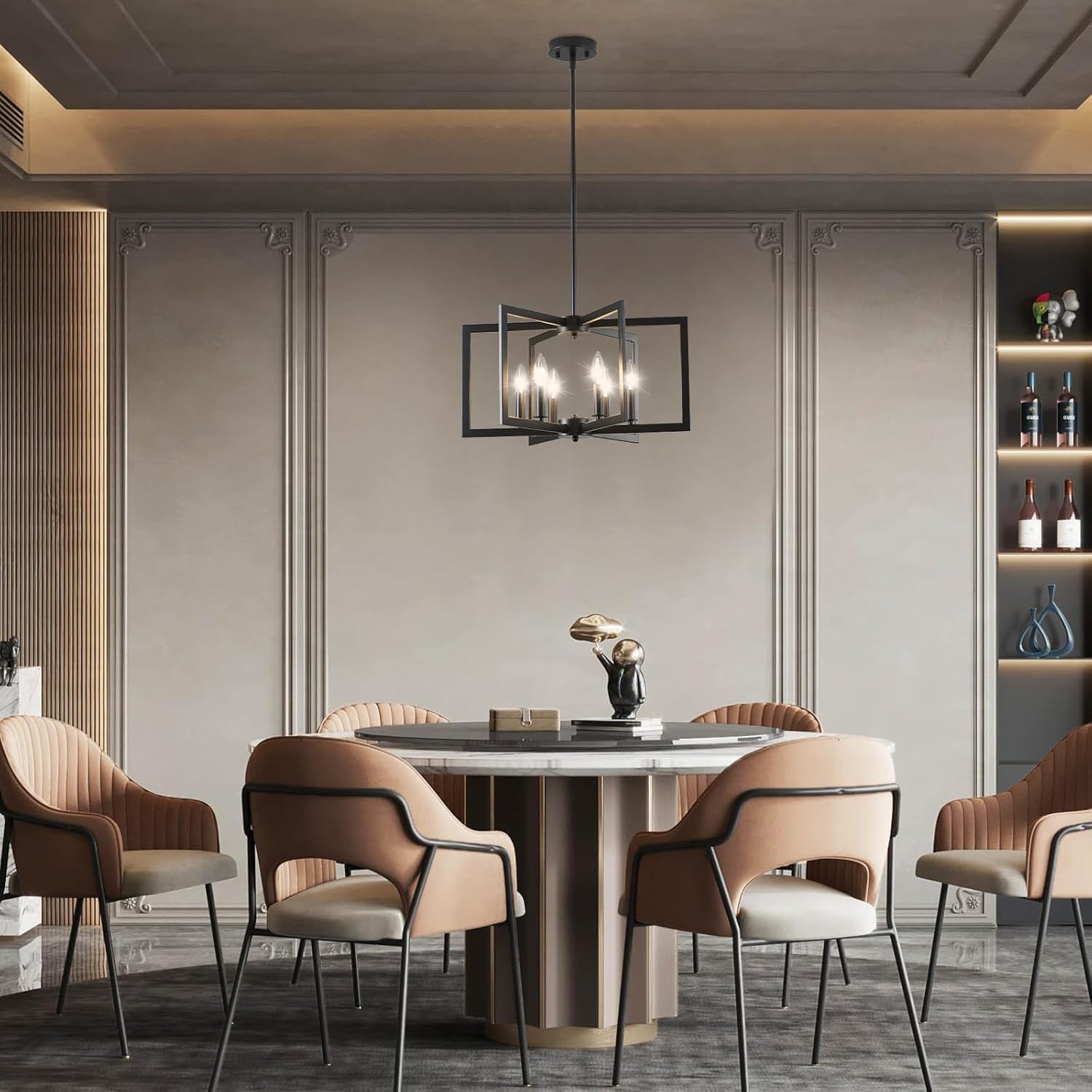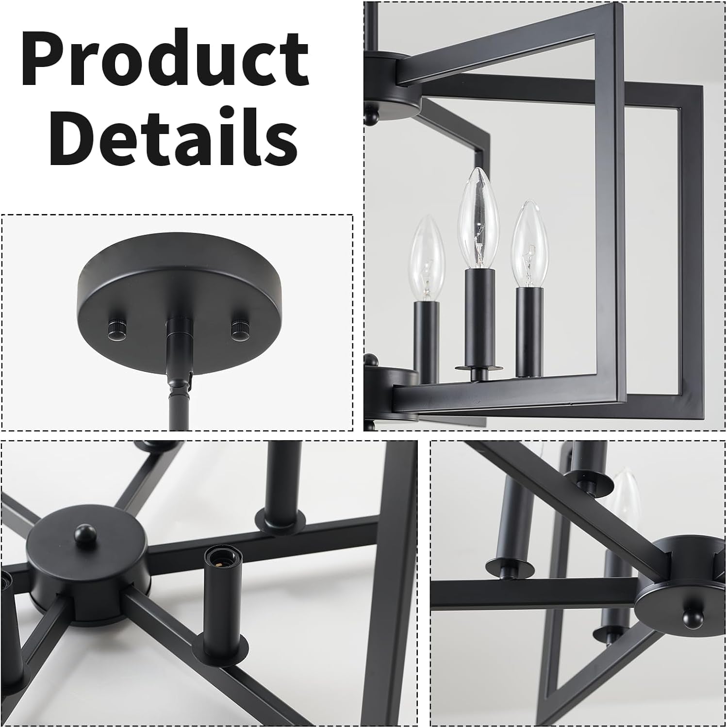 Black Chandelier, Dining Room Light Fixture Geometric Metal Modern