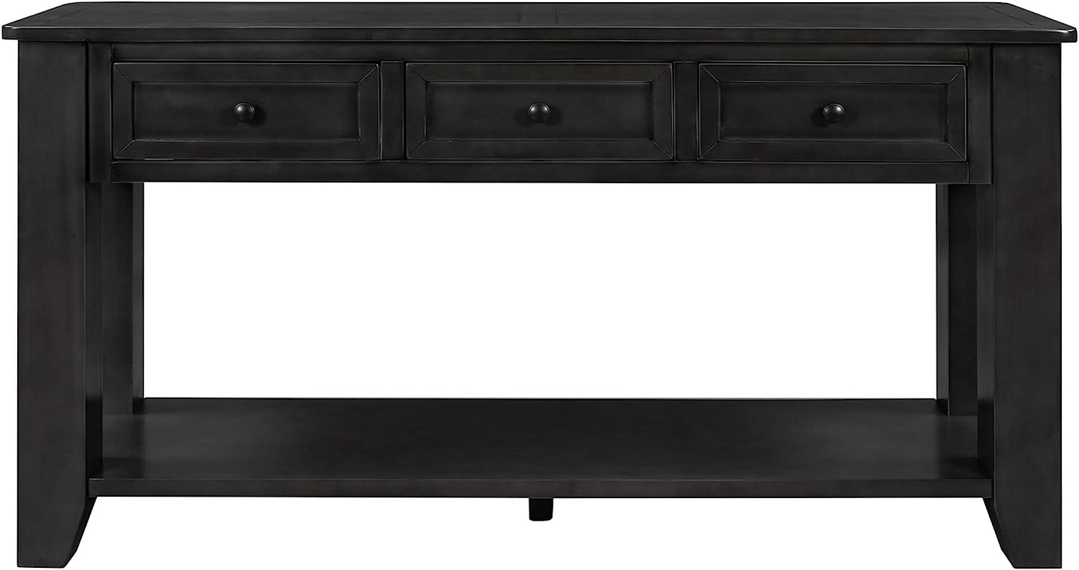 - ☛Our console table is functional designed, meet diversifying storage demands. There are three drawers at the top to provide sufficient storage space for your files, daily necessities, sundries and keep organized, one shelf under the drawer, which can support dictionaries, books, or pot culture, etc. Top board can place your favorite photos, vase, decorations, lamps or other knickknacks.