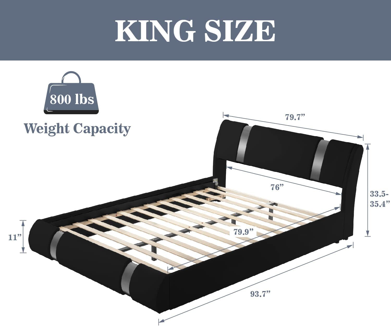Black King Faux Leather Upholstered Platform Bed Frame W/ Iron Piece