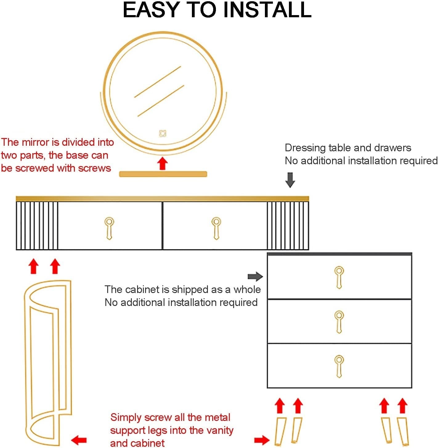 - TOUCH MIRROR LED LIGHT DESIGN: Modern dresser mirror adopts touch mirror LED light design, and three light colors and different brightness can be adjusted by touching the light. The clear silver mirror and soft atmosphere lamp will create a perfect makeup look.