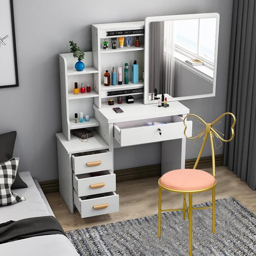 Bow Vanity Chair Set, Princess Makeup Stool (Pink)