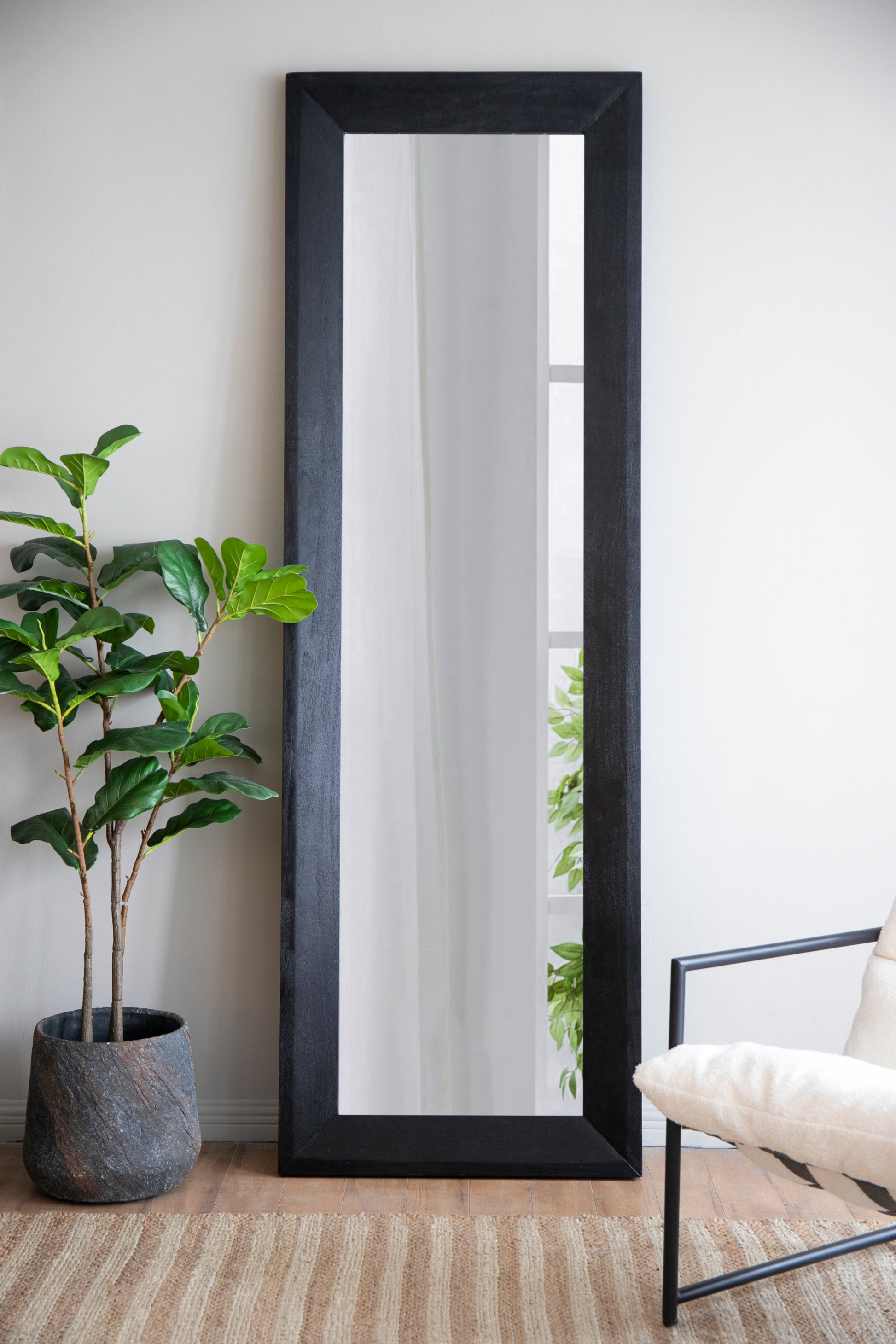 - Featuring a sleek rectangular frame coated in a black finish, this full length mirror offers an unmatched elegance to your space.