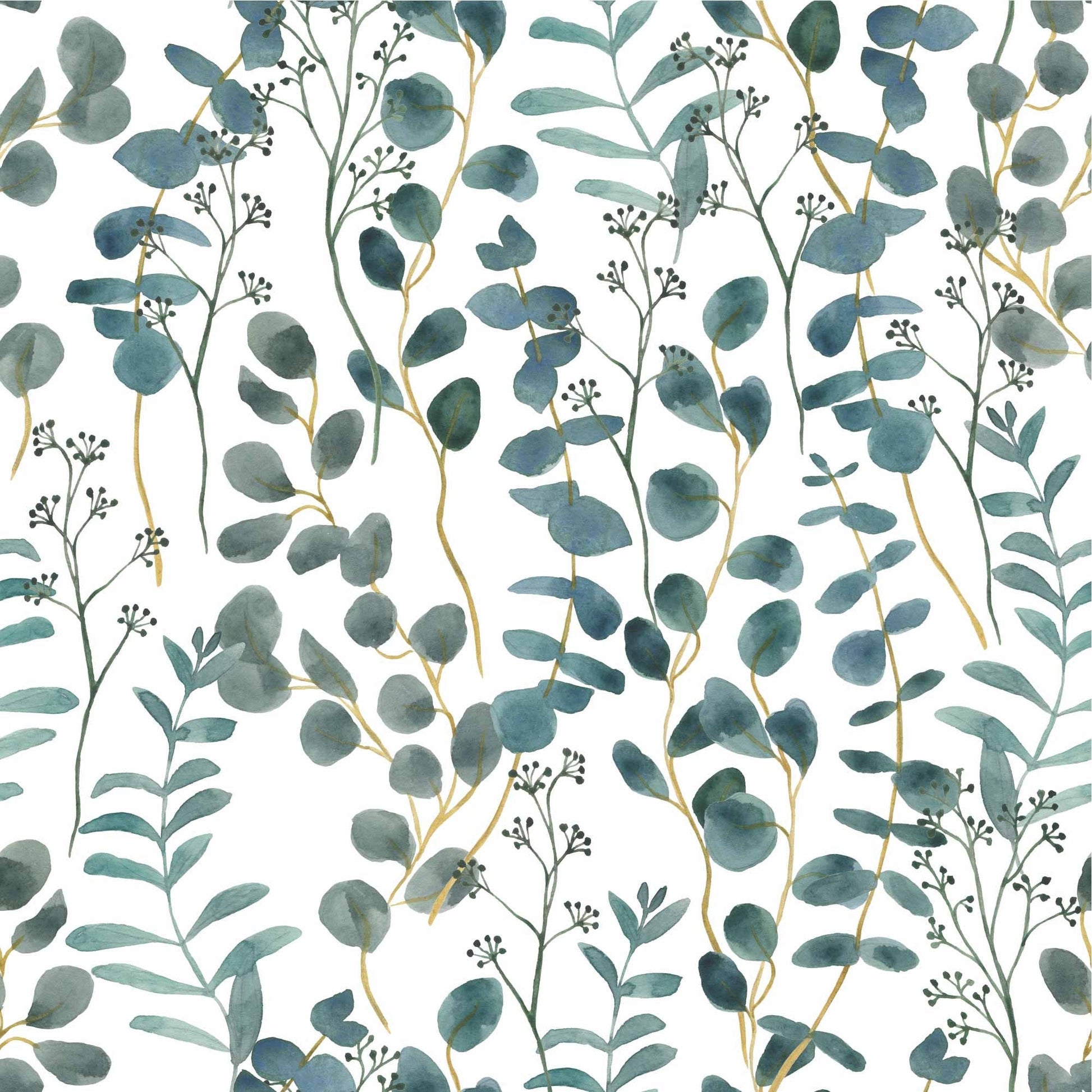 Cozy, cheerful, and slightly romantic with a design inspired by the spring beauty of eucalyptus leaves. This is the Turquoise Leaves Wallpaper, in a beautiful greenish tone ideal for decorating bathrooms or nursery rooms.
