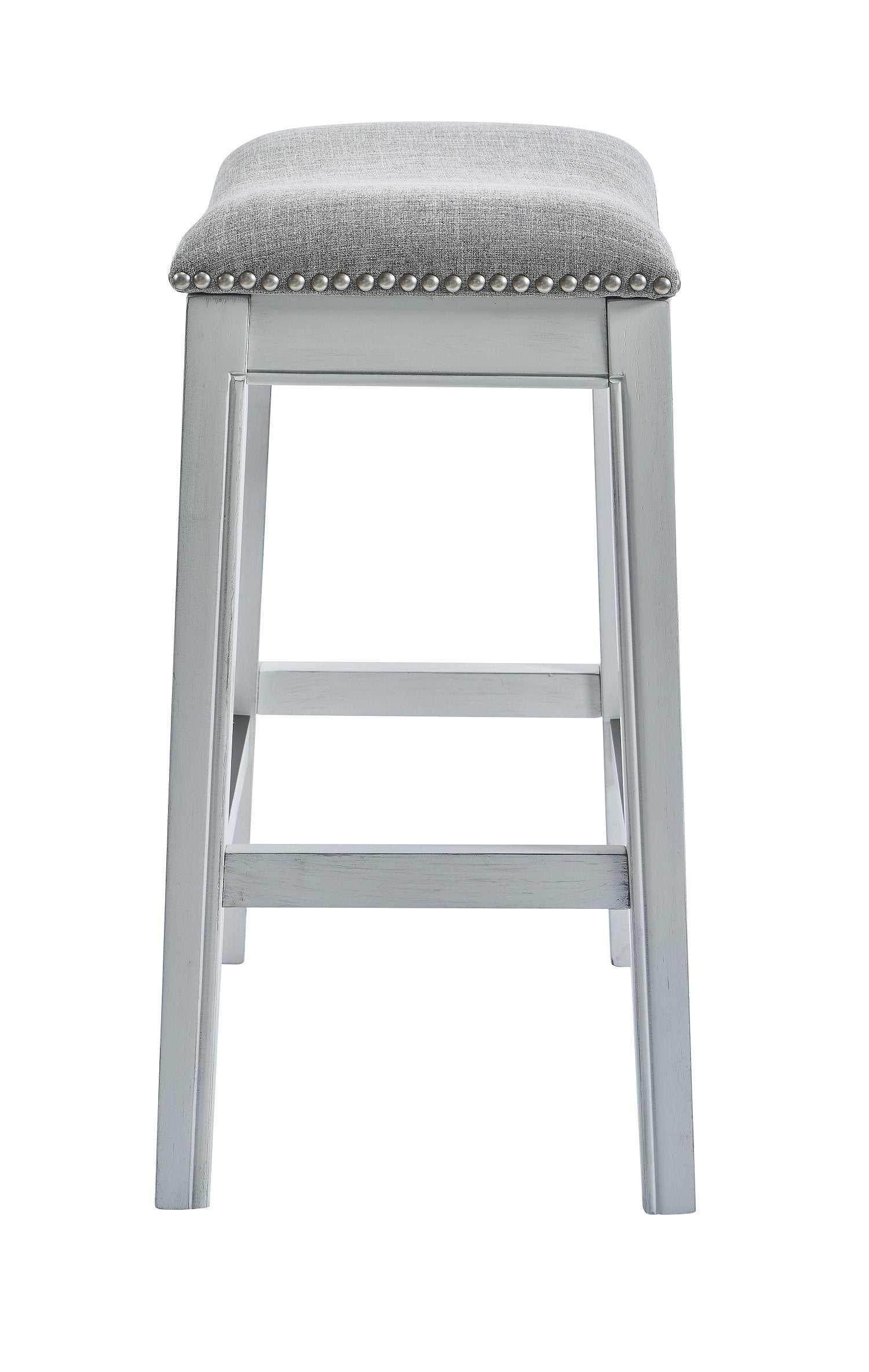 Counter Height Saddle Style Counter Stool with Grey Fabric and Nail