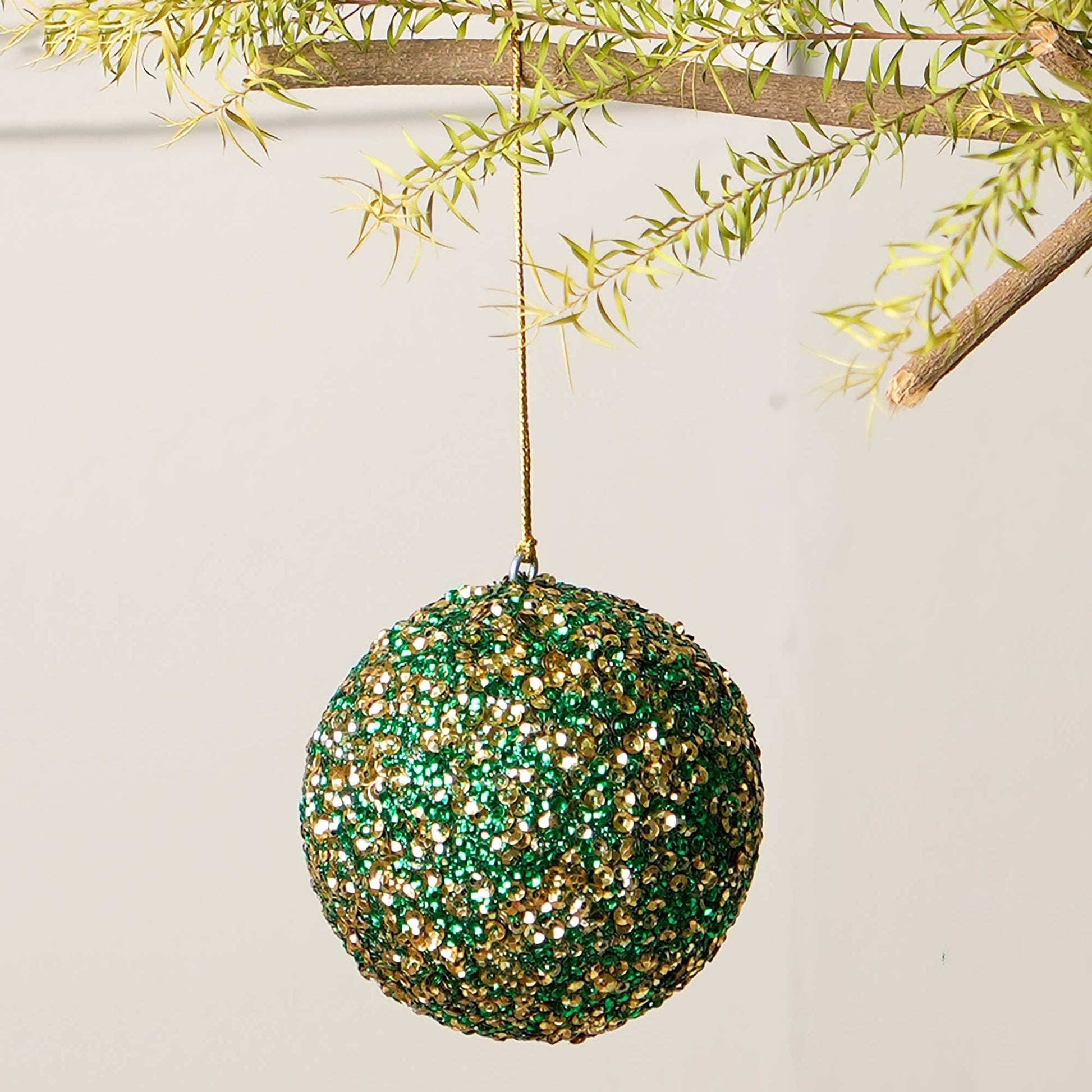 Expobazaar SEQUINS LAC BALL HANGING ORNAMENT- Gold & Green - Green & Gold