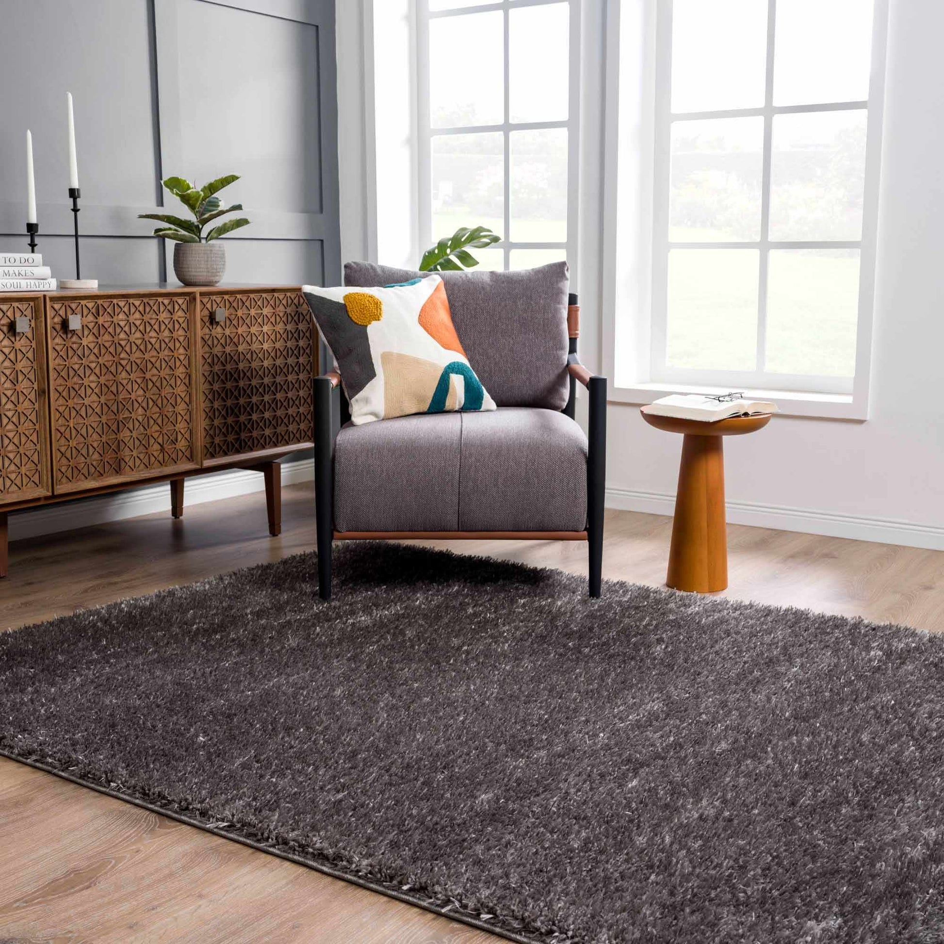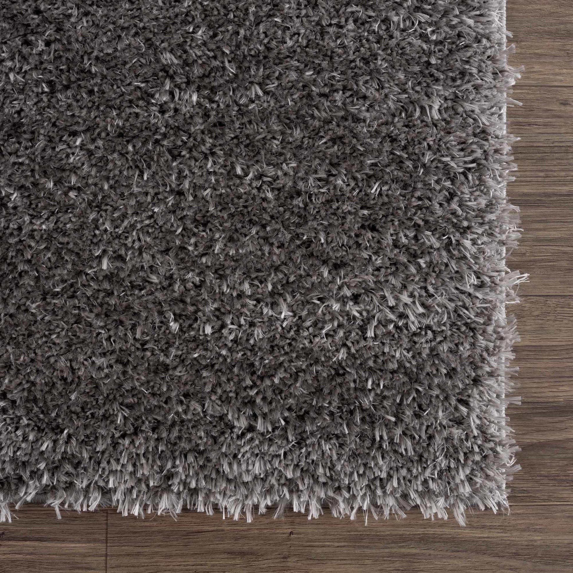Faina Solid Dark Gray Shag Rug Washable