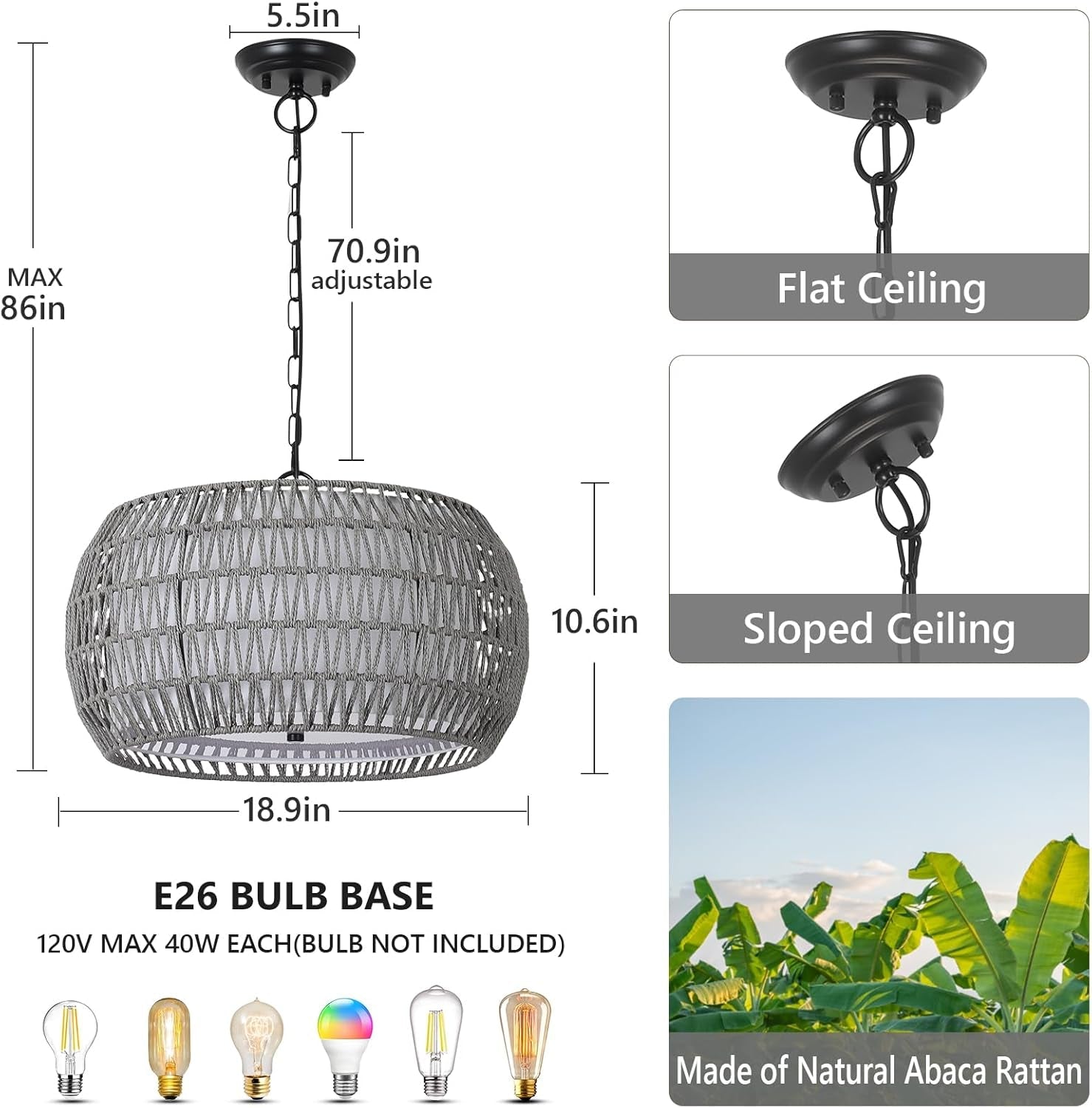 - Height Adjustable: With a width of 18.9" and a height of 9.8", the chandelier's hanging height can be adjusted from 9.8" to 84.6", making it suitable for both flat and sloping ceilings.