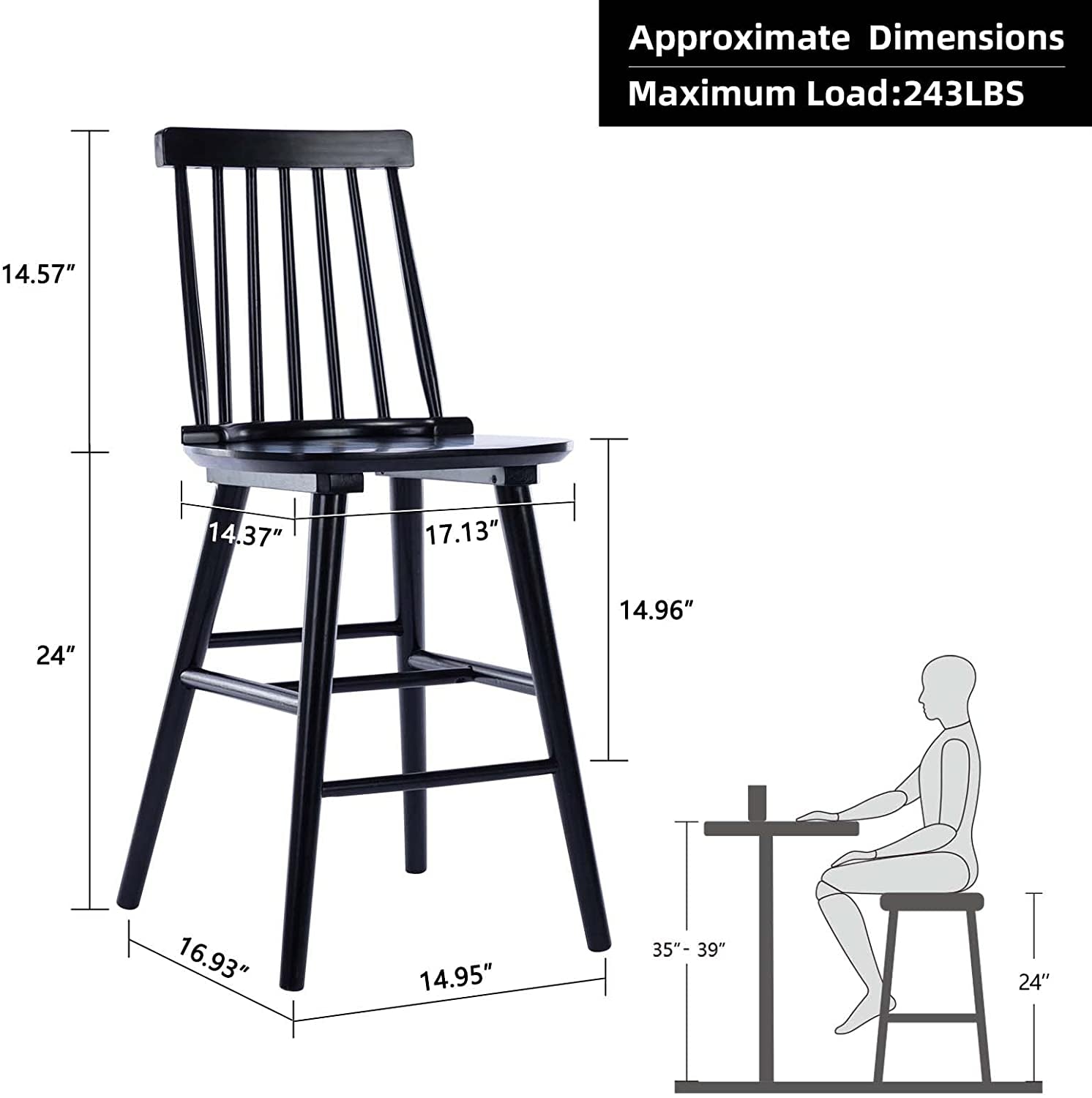 - 🌲Sturdy & Durable: These wooden 24’’ counter stools have been constructed from Rubber Wood, which features superior toughness and hardness, ensuring long-term use. The H-shaped structure supporting bars beneath the chair also enhance stability without wobbling. It presents you with a seating chair that will be durable and long lasting for daily use.