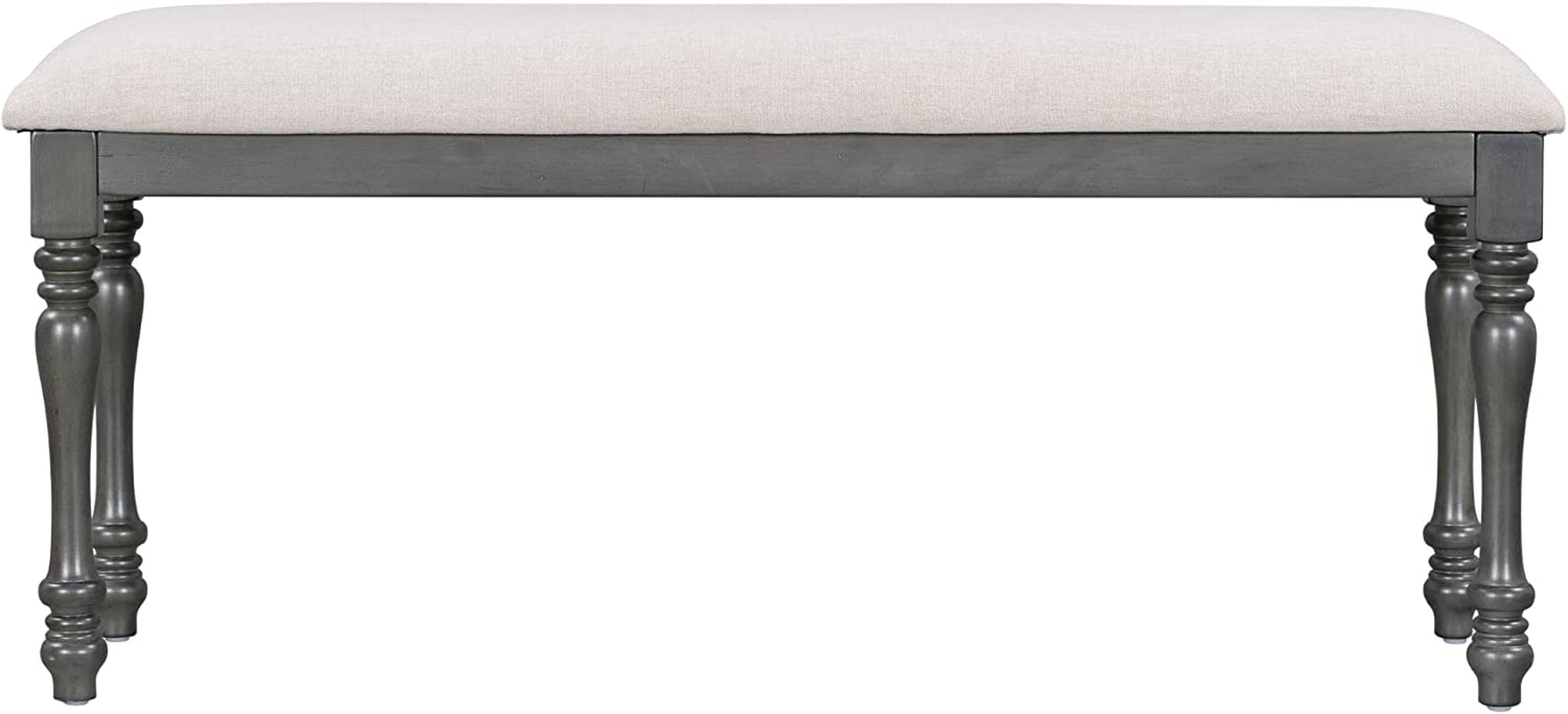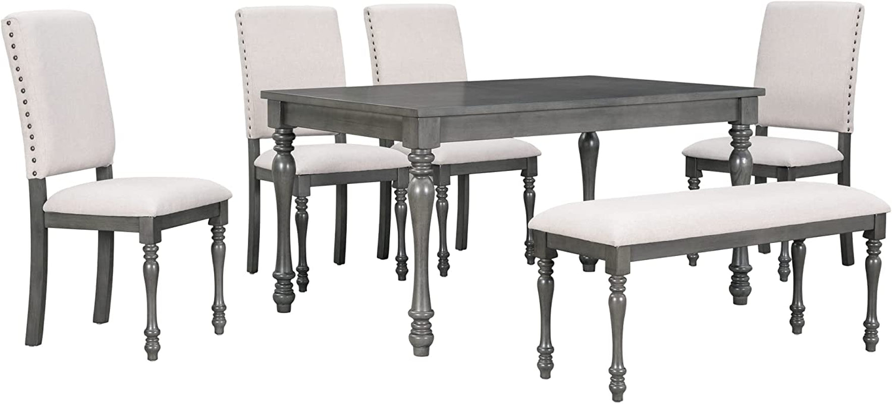 French Style 6-Piece Dining Table Set with Bench, Gray
