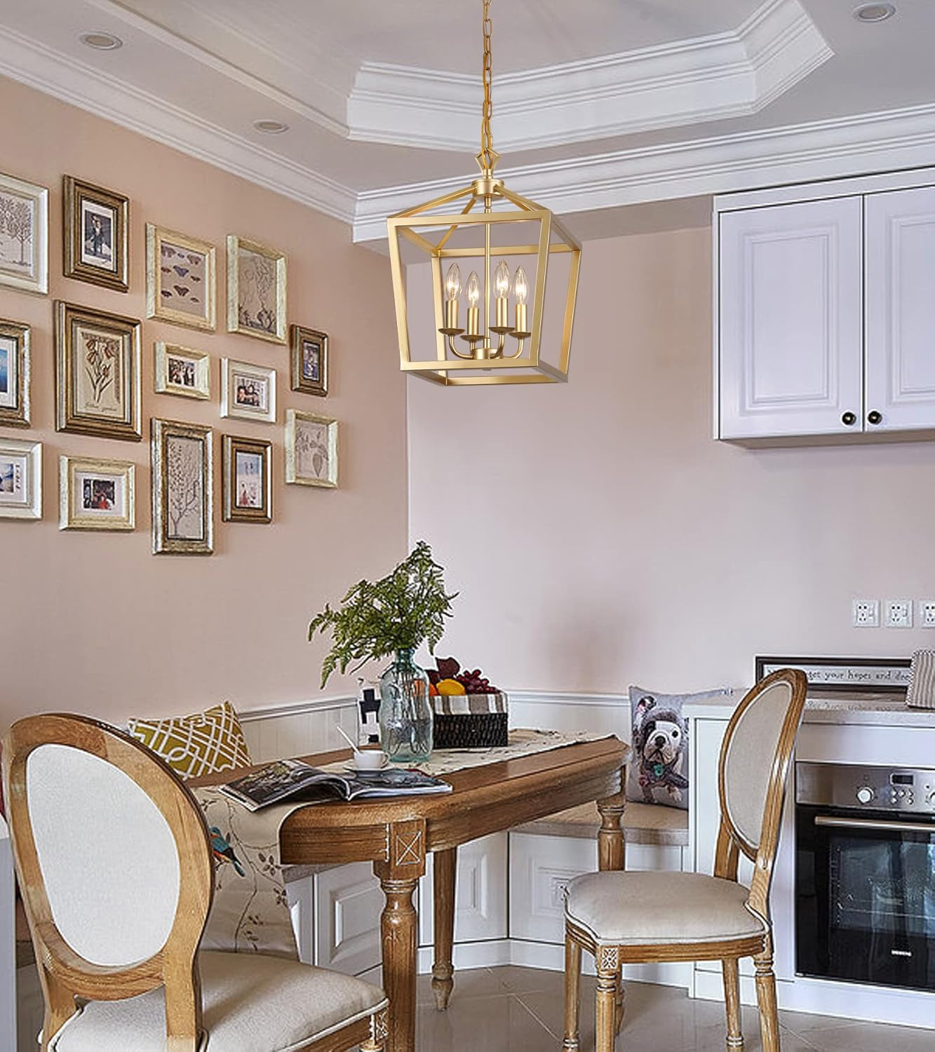 - Elegant Design: Crafted from durable wrought iron with a gorgeous gold finish, this chandelier features four candle holders that enhance its luxurious appeal.