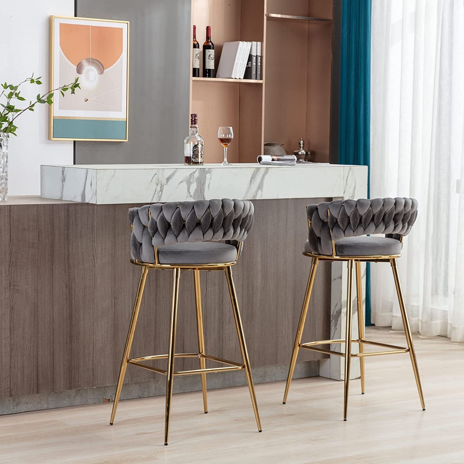 Gray Velvet Woven Backrest Barstool Set - Comfortable & Stylish