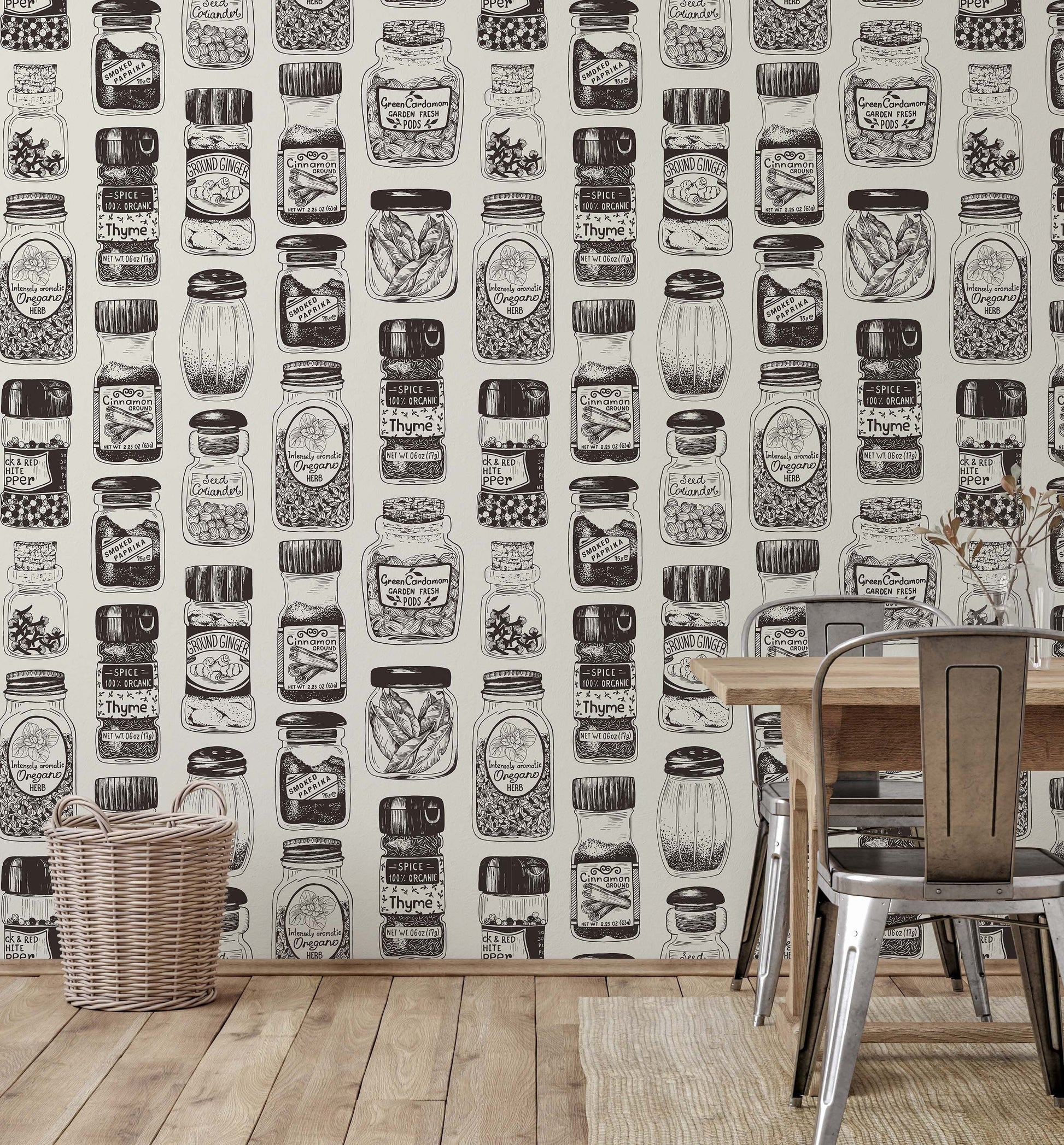 Introducing our Vintage Spice Rack Wallpaper, a custom design. Transform your kitchen into a charming culinary haven with this unique wallpaper. Adorn your walls with vintage-inspired herb and spice tins, reminiscent of a bygone era. This timeless design combines the nostalgia of vintage packaging with the modern treat of customizable wallpaper. Spice up your kitchen decor and take a step back in time with this delightful addition. Don't miss out on the opportunity to enhance your kitchen's ambiance.