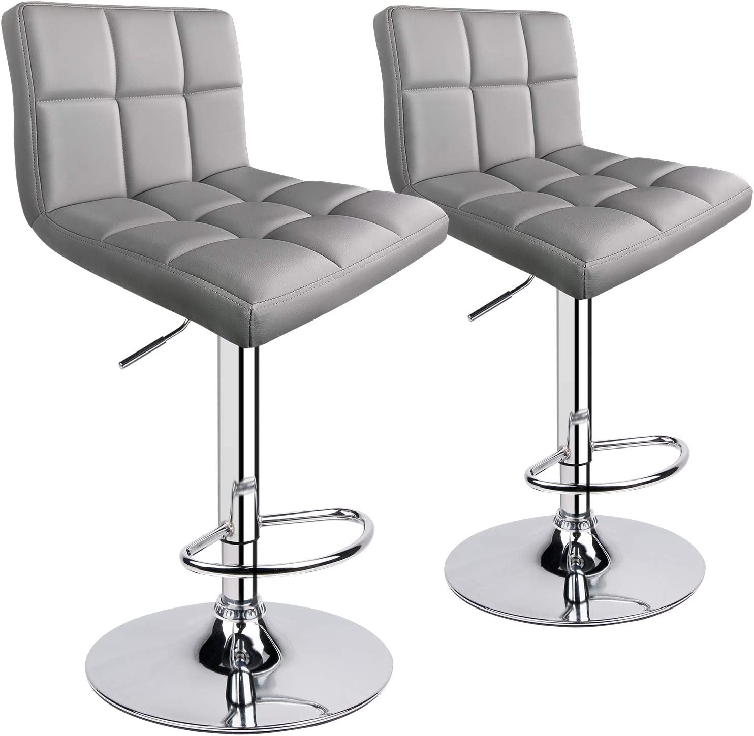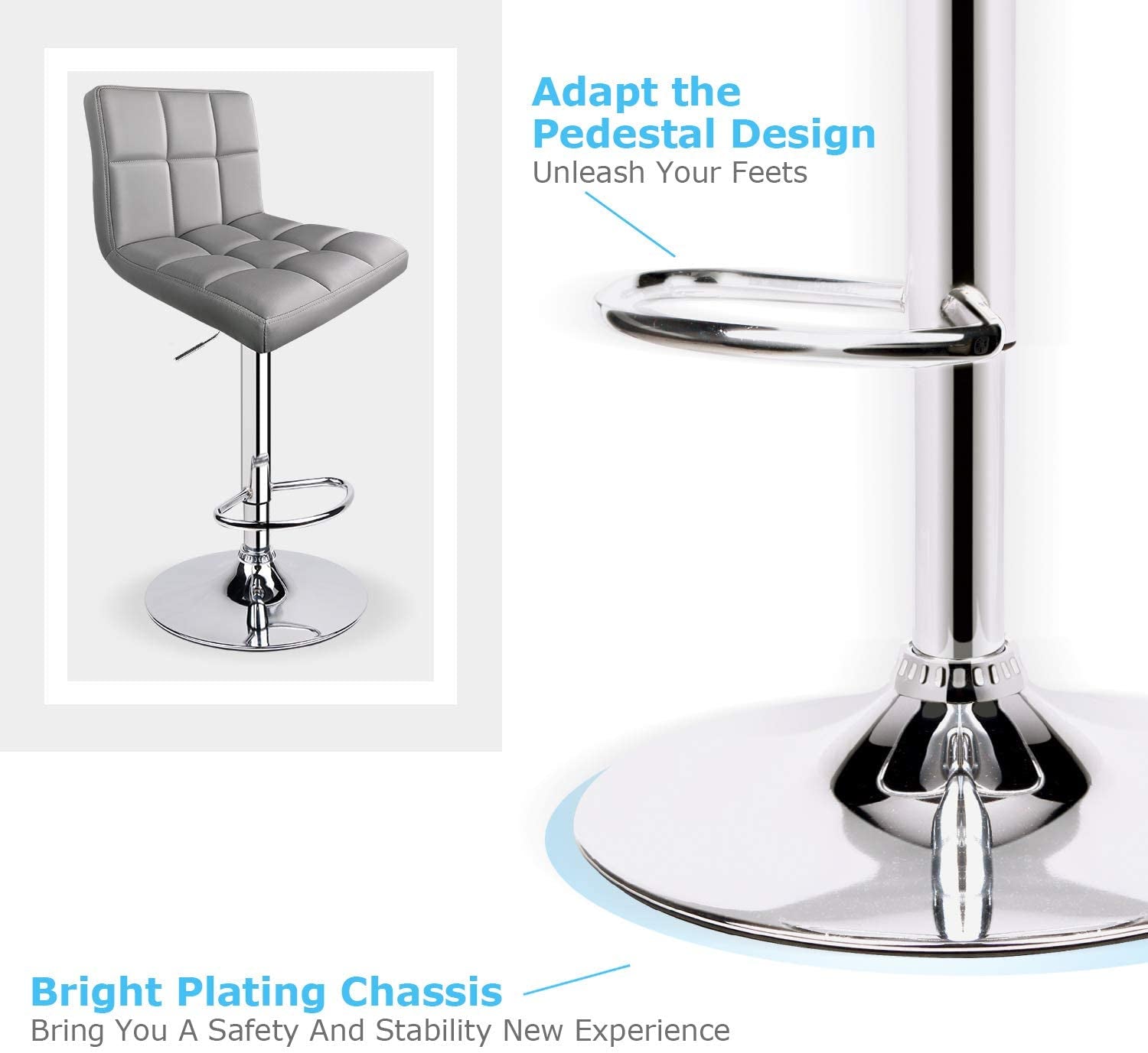 - The bar stools with a built in 360 degree swivel; Quilted, seat upholstered in faux leather; Constructed with polished chrome base and footrest