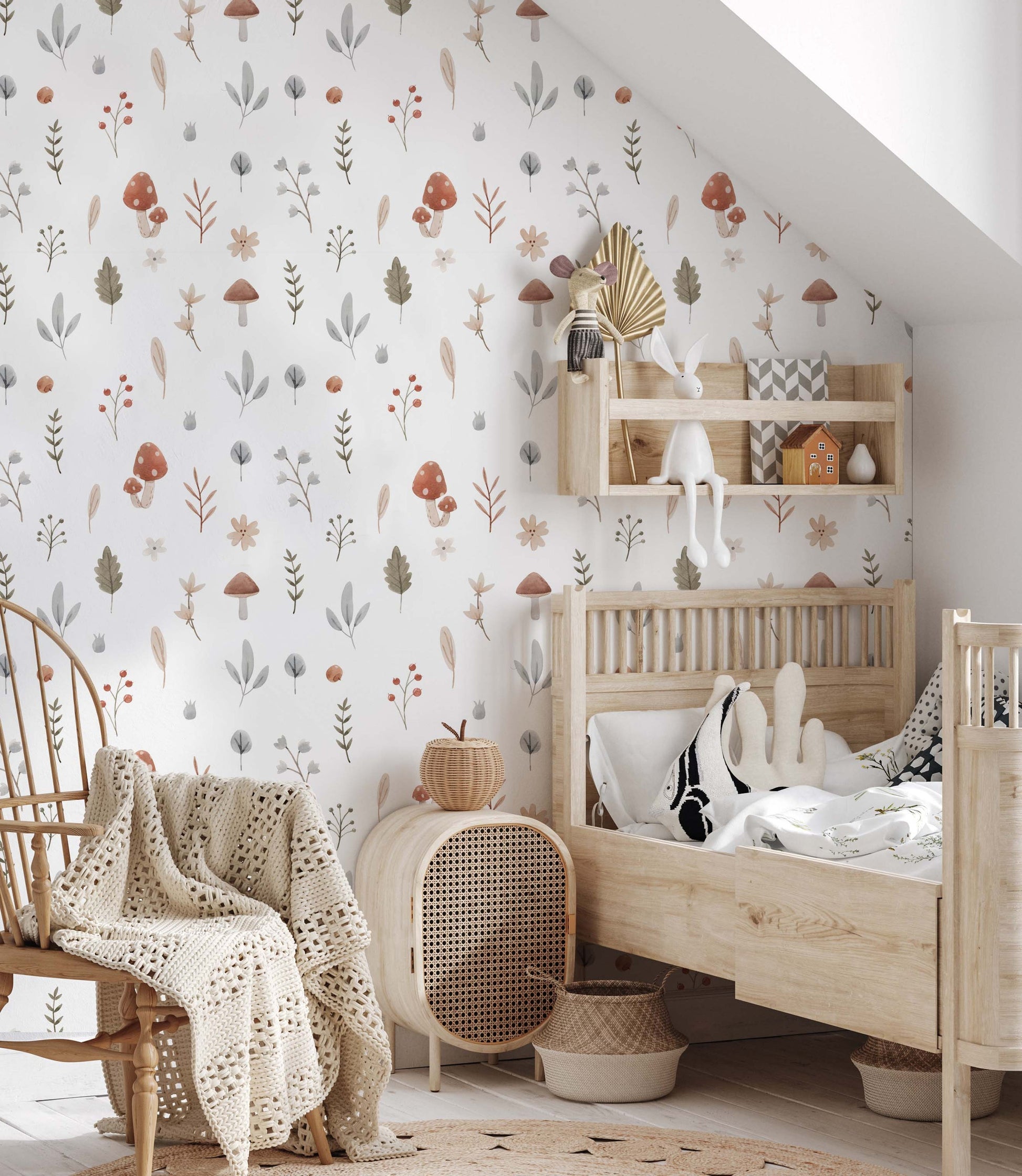 Bring the whimsy of nature into your nursery with our Mushroom Cottagecore wallpaper design. Delightful and cozy, it adds charm to your little one's space.
