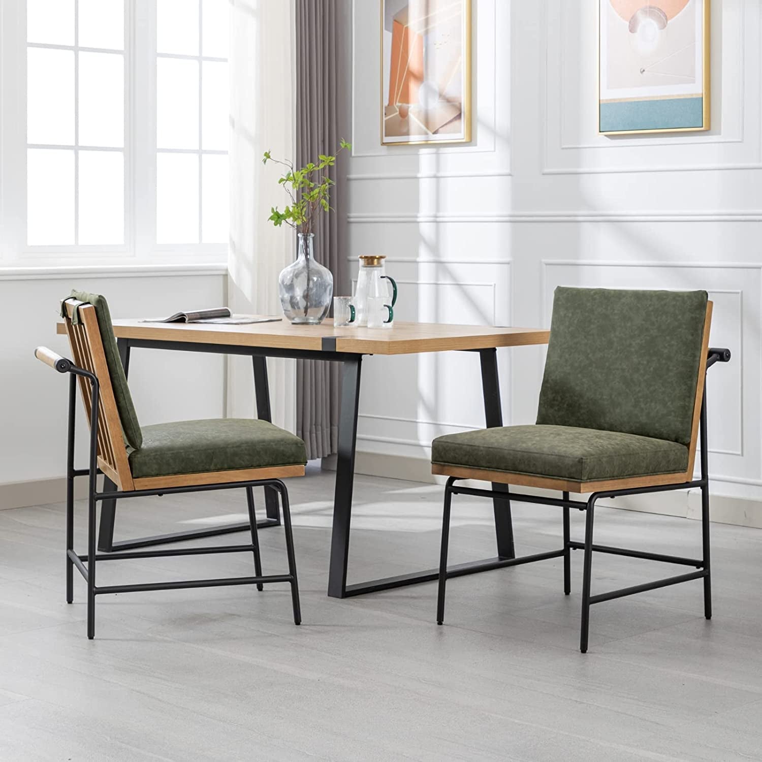 Mid Century Leather Dining Chairs Set of 2 in Green