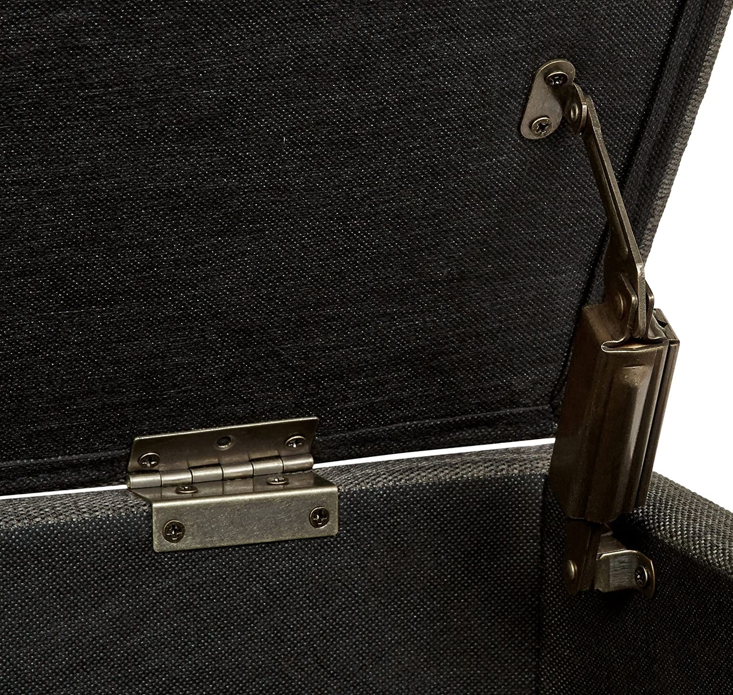 This First Hill 5th Ave Modern Charcoal Linen Upholstered Storage Ottoman measures 24" length x 17.75" width x 18" height.