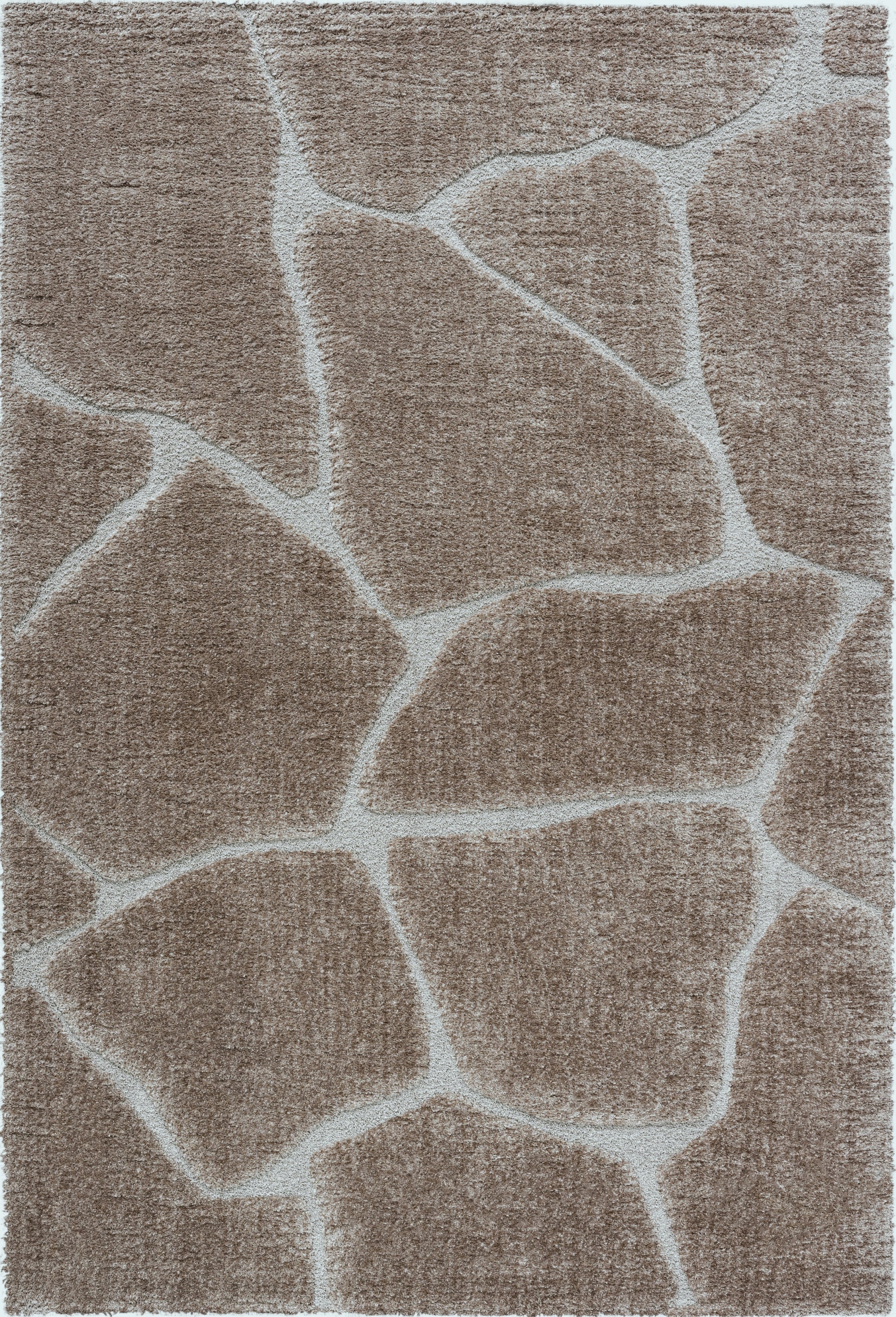 - Neutral tones and a high-low texture create a layered, designer look without overpowering existing decor.
