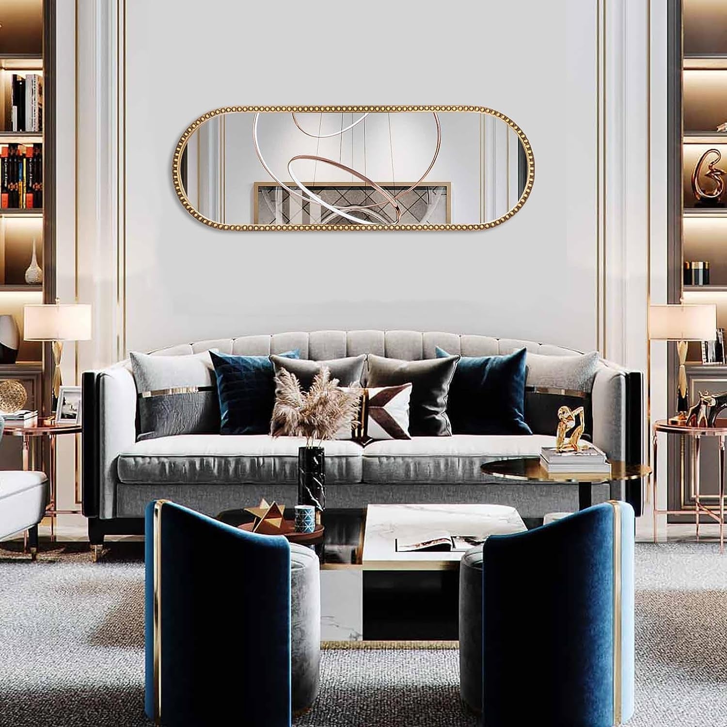 - 16"x47" Wall Mirror - 16x47 inches mirror is a suitable size to put anywhere in your space. The large full body mirror, made of heavy duty strong cast iron with vintage gold finish, weighs 15.76 lbs. This sturdy, durable, anti-scratch, corrosion resistant and non-rusting mirror is ideal for bathroom, living room and entryway.