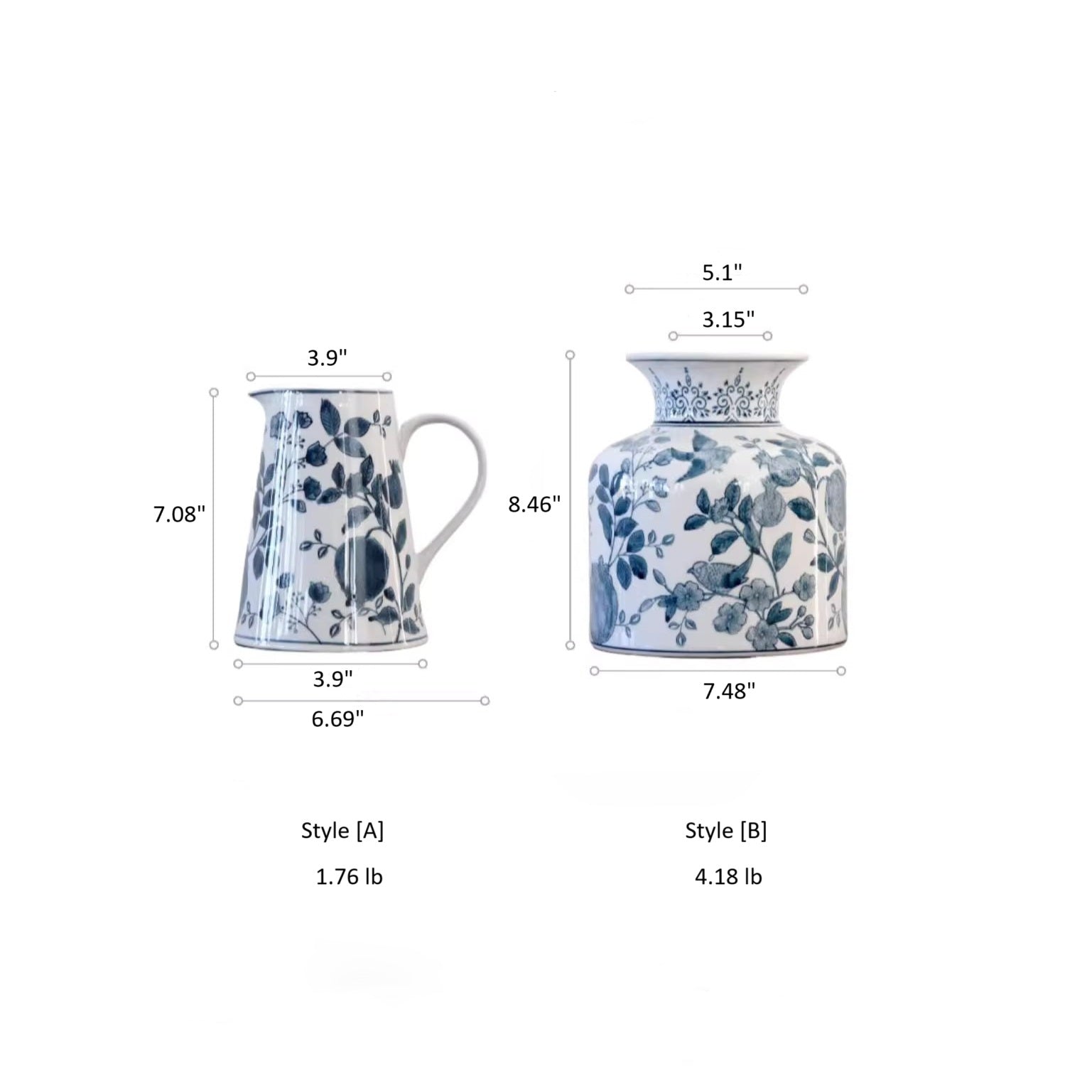 Pomegranate Hand-Painted Blue and White Porcelain Vase