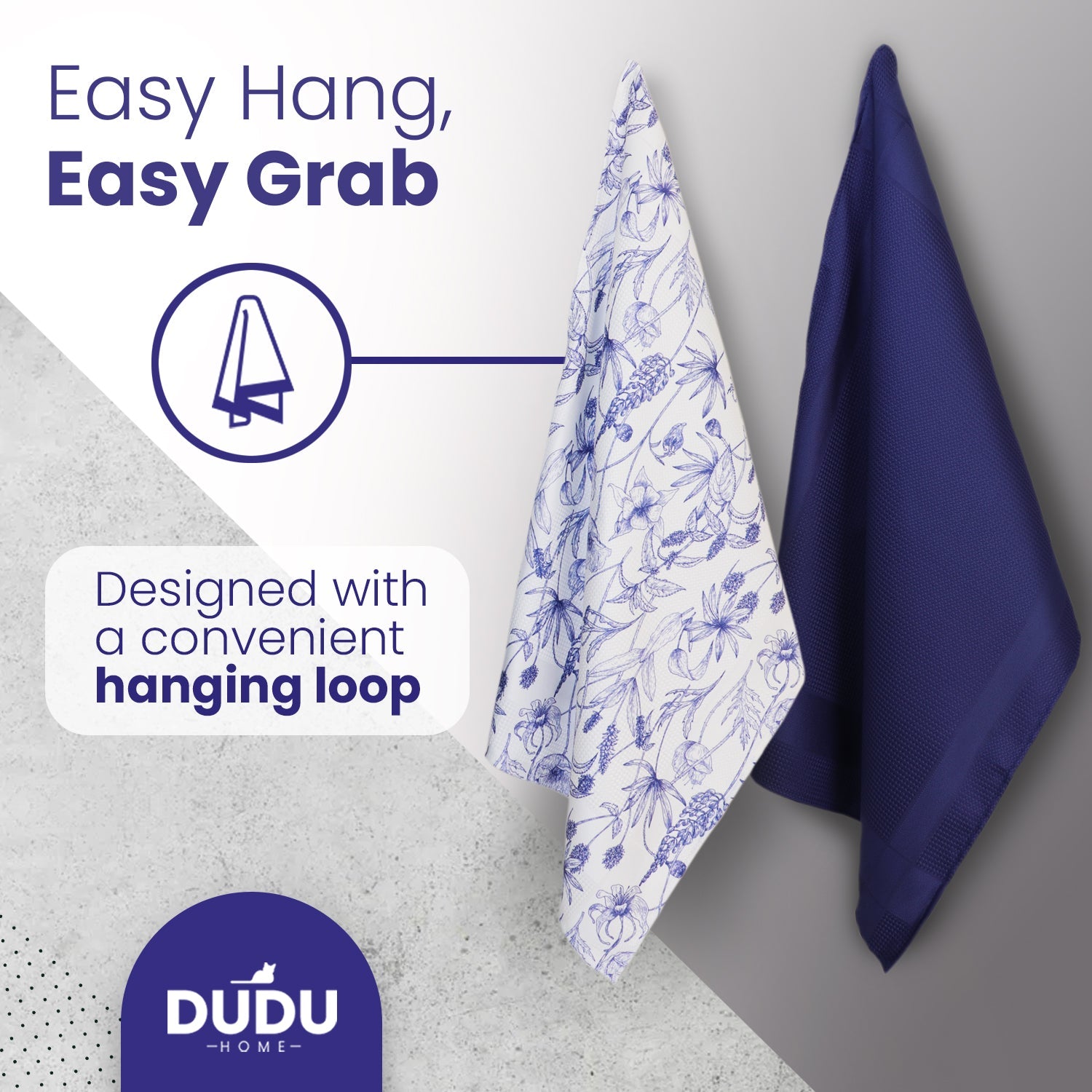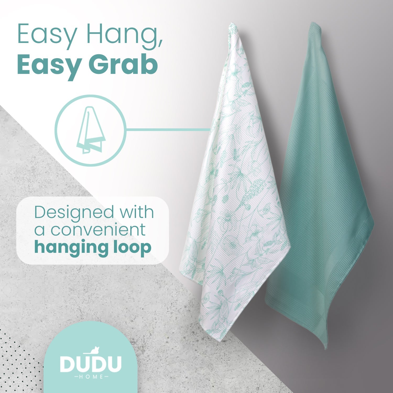 Versatile 16 x 24-inch microfiber towels with loops for hanging, offering quick access and easy storage while keeping your kitchen effortlessly stylish. -