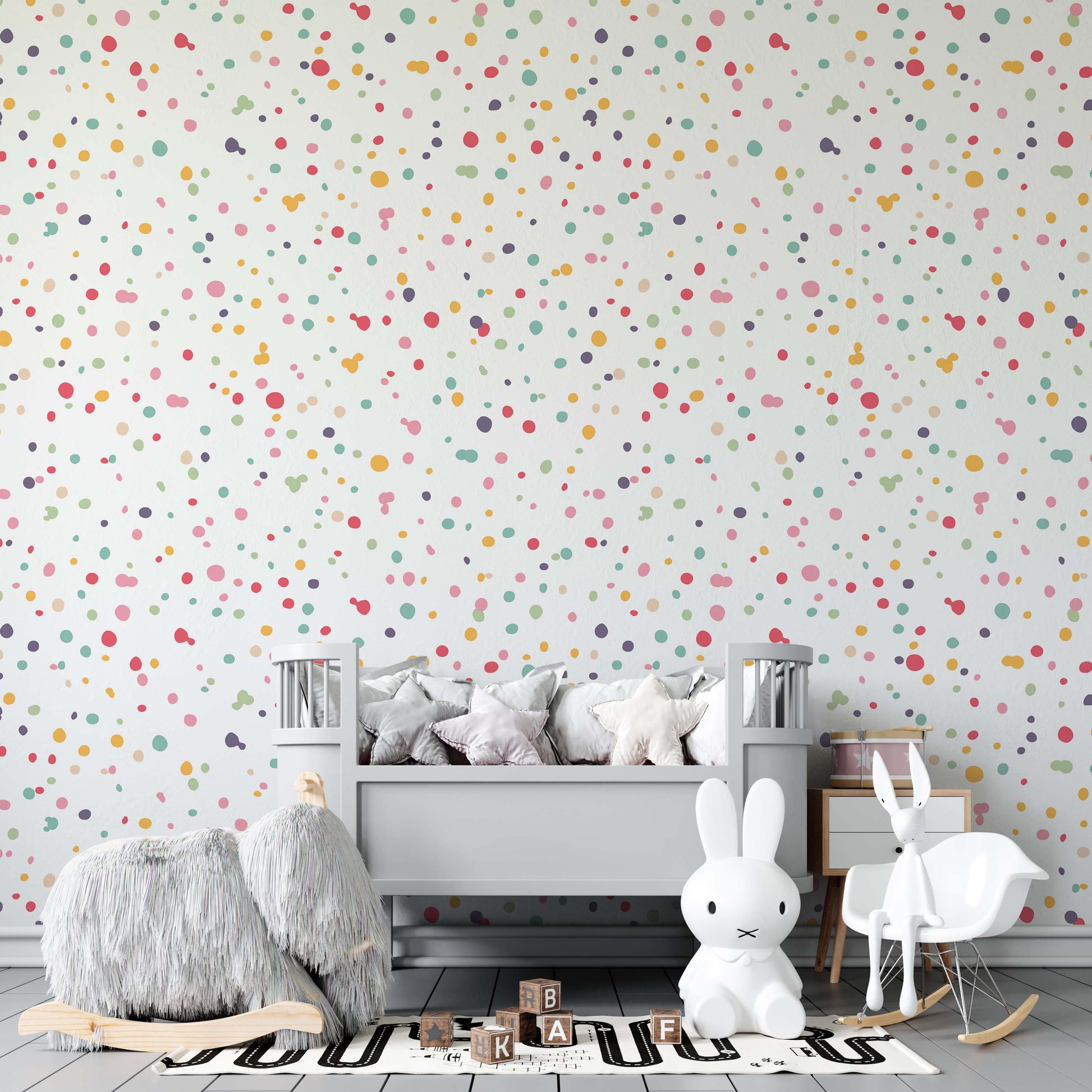 This bright and bold polka dot wallpaper adds an instant pop of joy to any room. Whether you're upgrading your living space or embarking on craft projects, "Rainbow Polka Dots" is the perfect choice. The eco-friendly design is great for enhancing kids rooms and nursery rooms and playrooms.