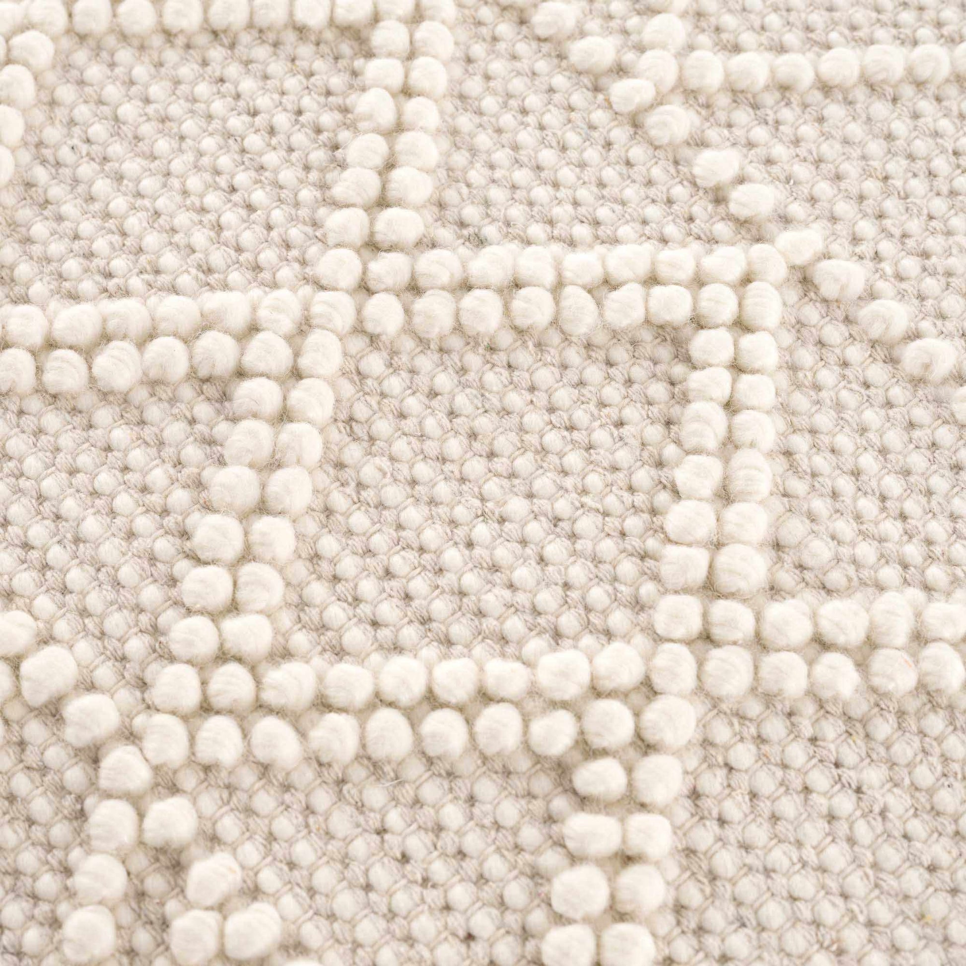About: This hand-woven wool and cotton rug features a sophisticated trellis pattern, offering a blend of traditional charm and contemporary elegance. The high-low texture of the rug adds a unique tactile element, enhancing its visual appeal and comfort underfoot. Adorned with tasteful tassels, this rug brings a classic yet modern touch to any room. Its combination of wool and cotton materials ensures durability while providing a soft, inviting surface, making it a luxurious and practical choice for any living space. |