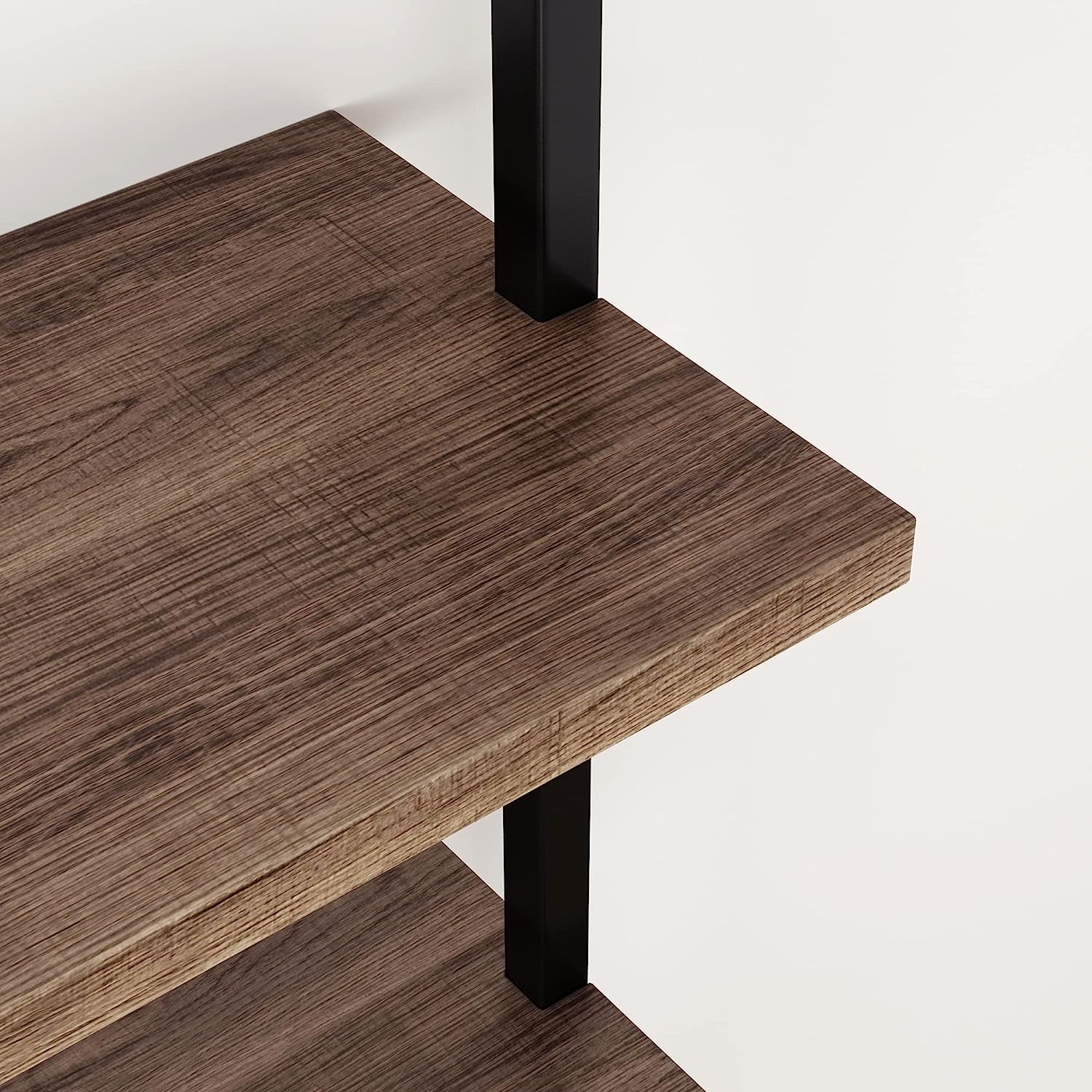 - This floating bookshelf is a space-saving shelving unit with a rustic industrial style thanks to its oak wood shelves and matte metal frame