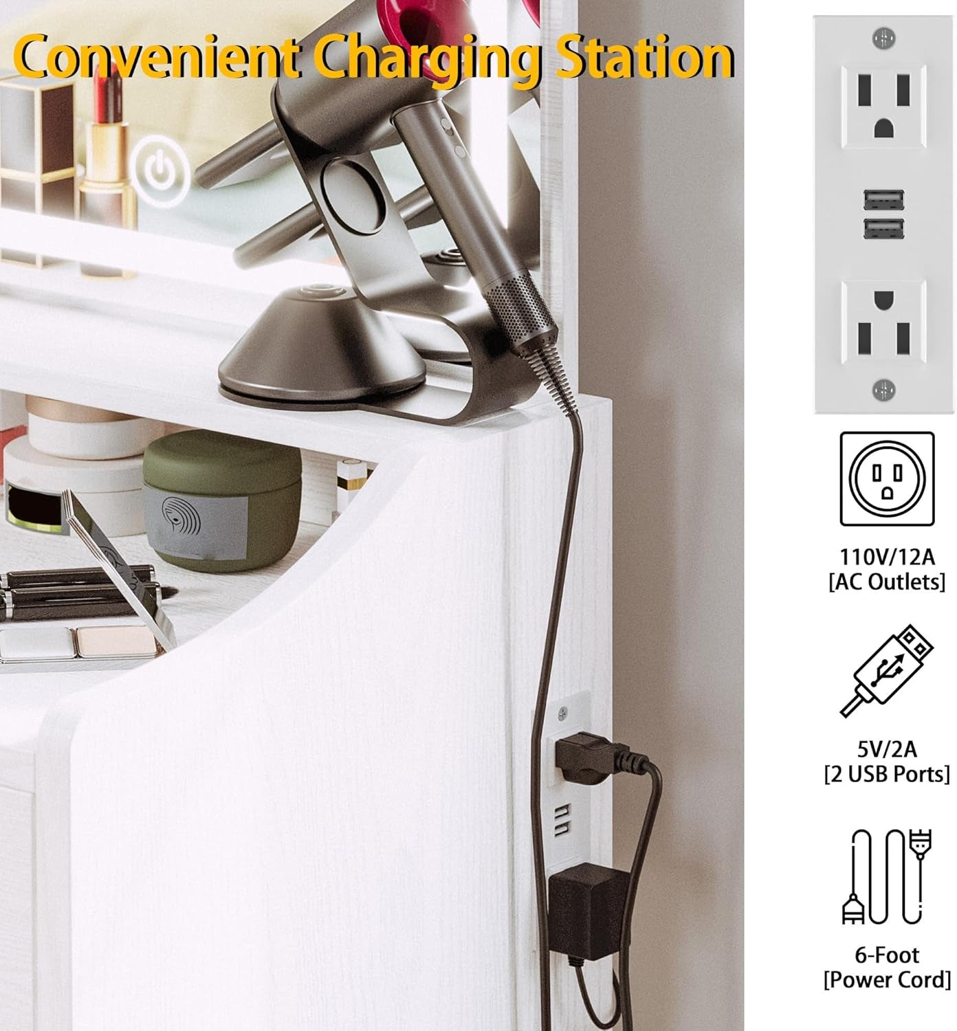 - Stylish Charging Station: Features a built-in charging station with two standard plug outlets and USB ports, perfect for charging hair dryers, mobile phones, and other devices.