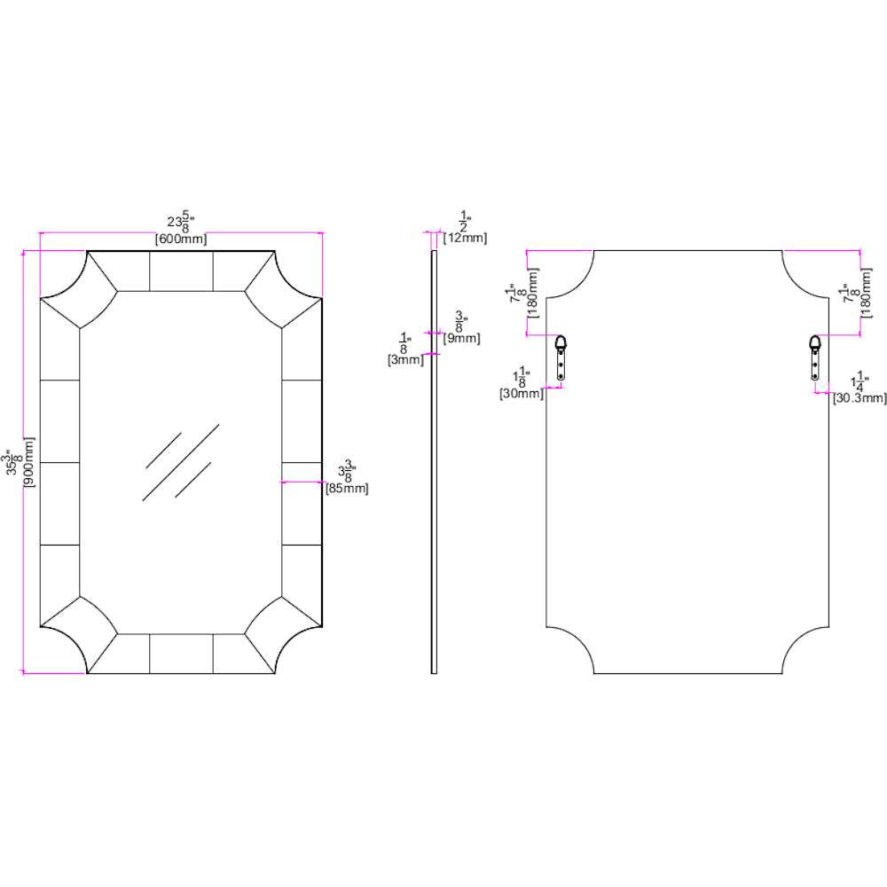 - Beveled glass edges have been cut at an angle to create a framed look and add dimension. This mirror is sure to be the focal point of the room