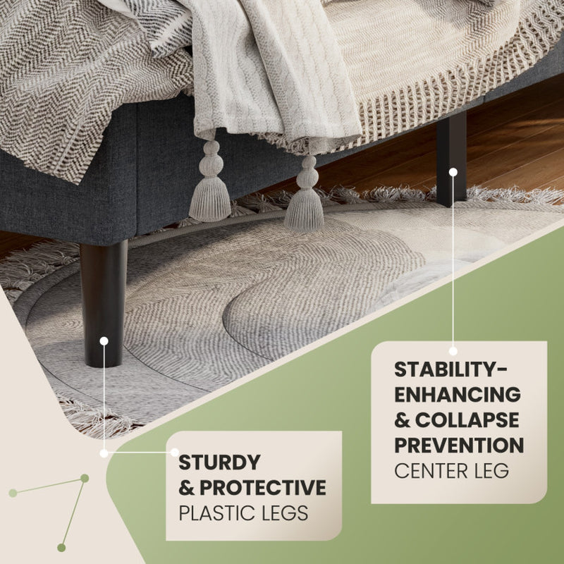 - Stable Bed Frame: Features a robust design with five additional legs in the middle for enhanced weight distribution.