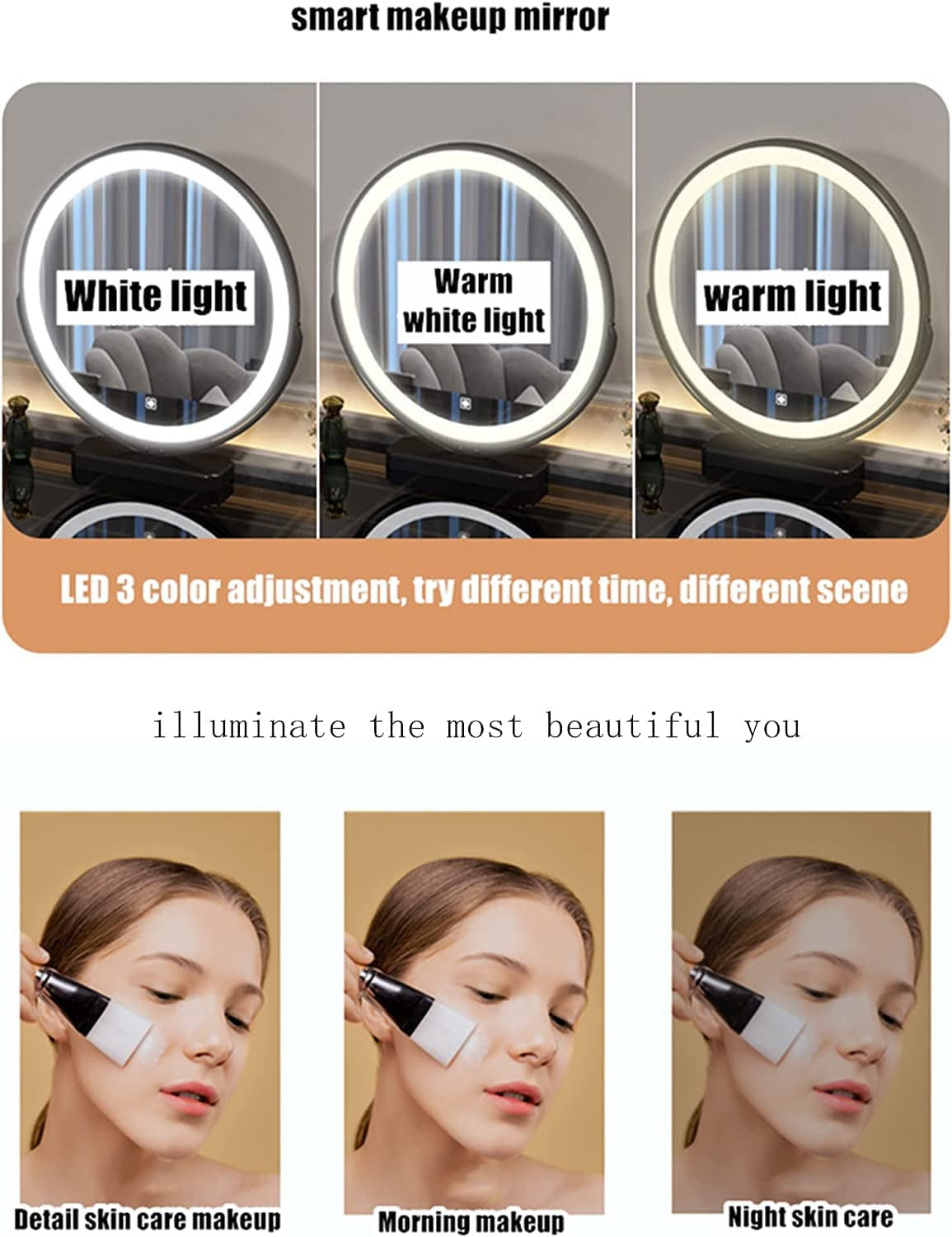 - SMART MAKEUP MIRROR: Through the touch button on the makeup mirror, you can adjust the 3 modes of LED light. White light is more suitable for detailed makeup and skin care; warm white light is more suitable for makeup; warm light is more suitable for night skin care. The three modes correspond to different scenes. use.