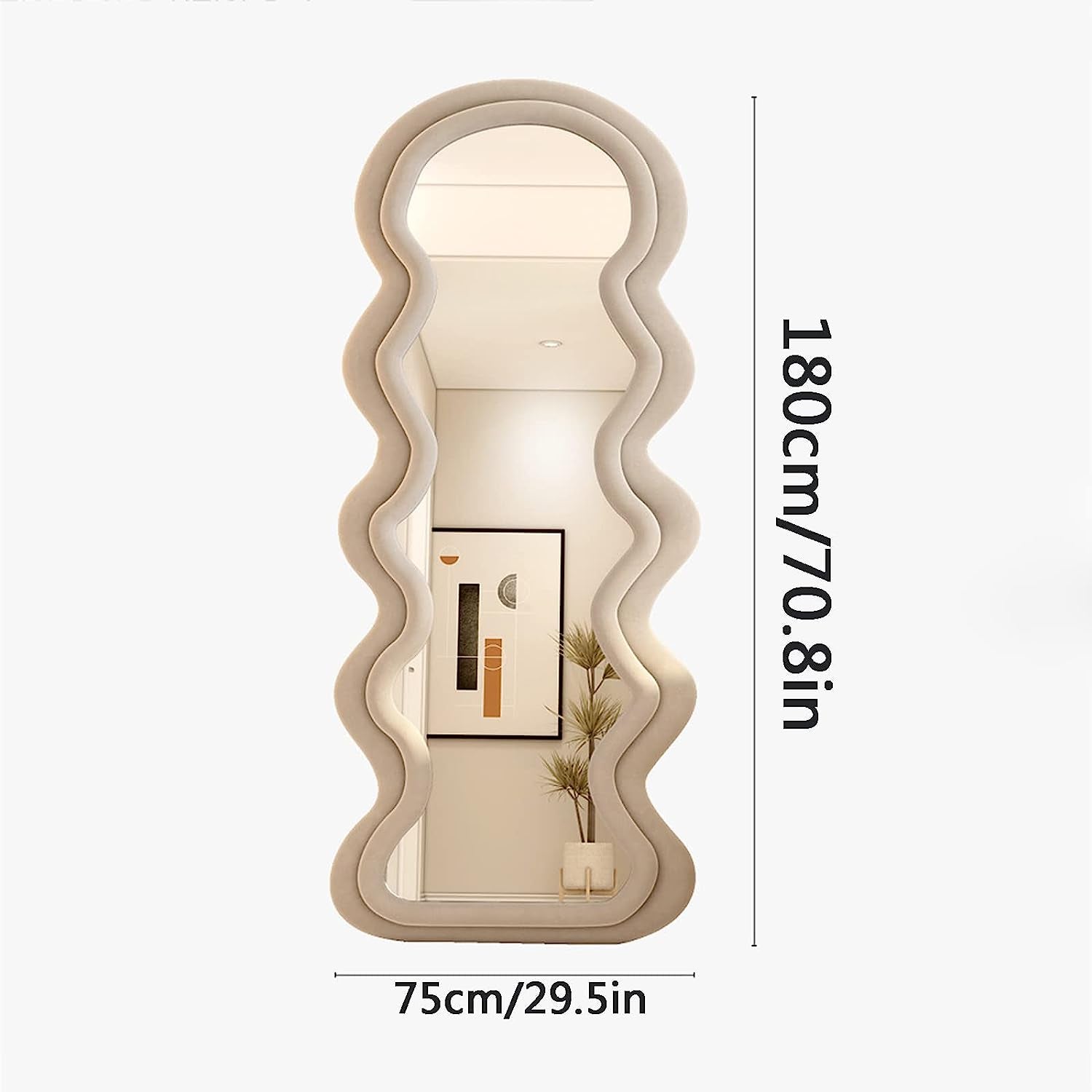 - WAVY DESIGN: The shape of the full length mirror uses an irregular design. The wavy shape makes the entire mirror looks unique. It is very conspicuous in any space and makes your room look tasteful.