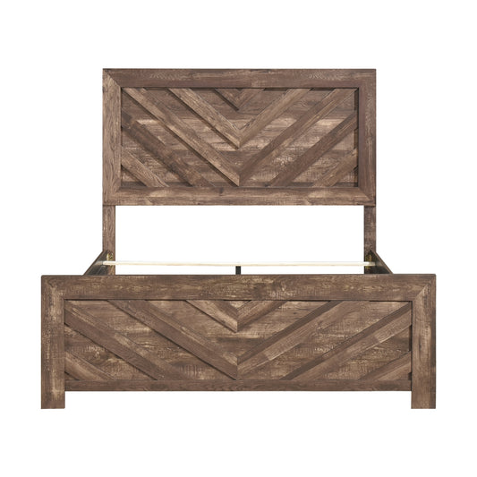 Rustic Brown Finish Contemporary Queen Size Panel Bed Wooden Bedroom Furniture 1pc, Bed in a Box