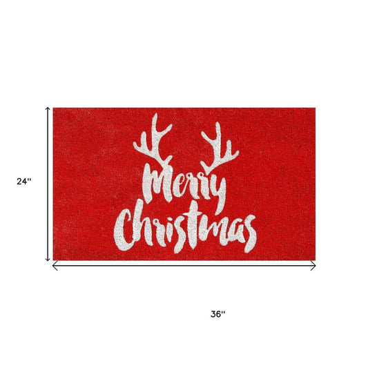 17" X 29" Red And White Coir Merry Christmas Outdoor Door Mat