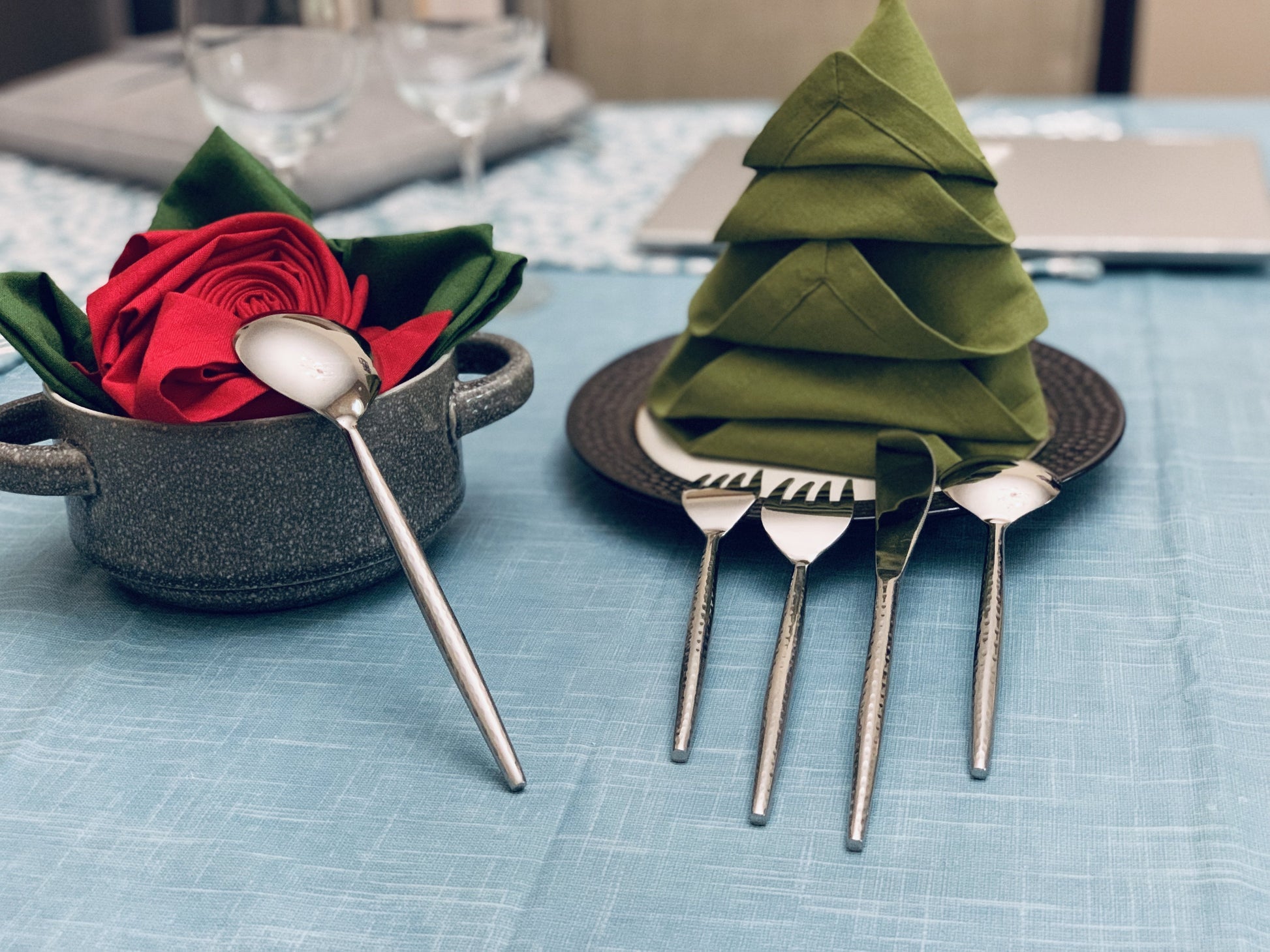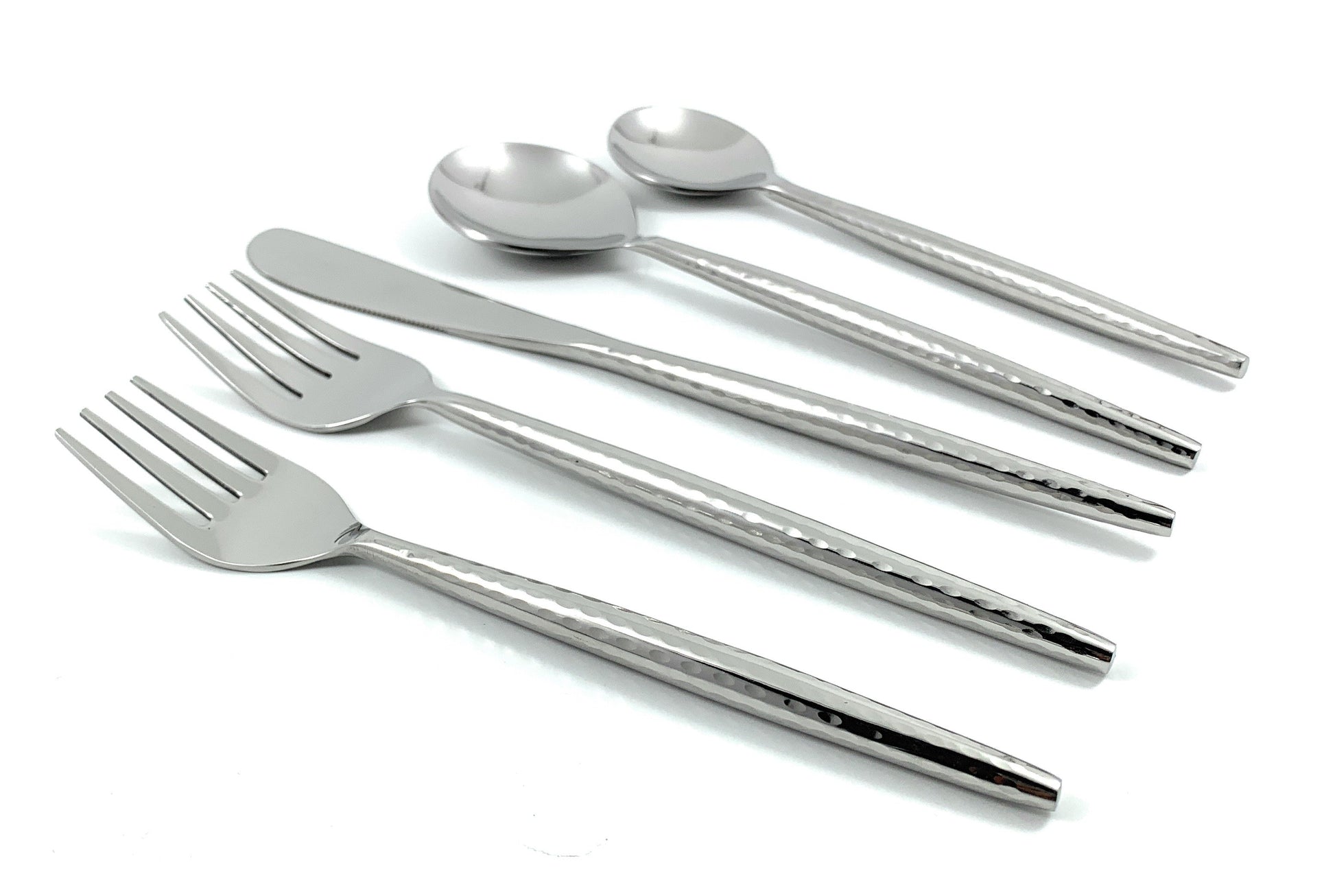 - Made by artisan Stainless Steel cutlery set. Hammered designed handle with High Gloss Finish gives a classic look to your parties