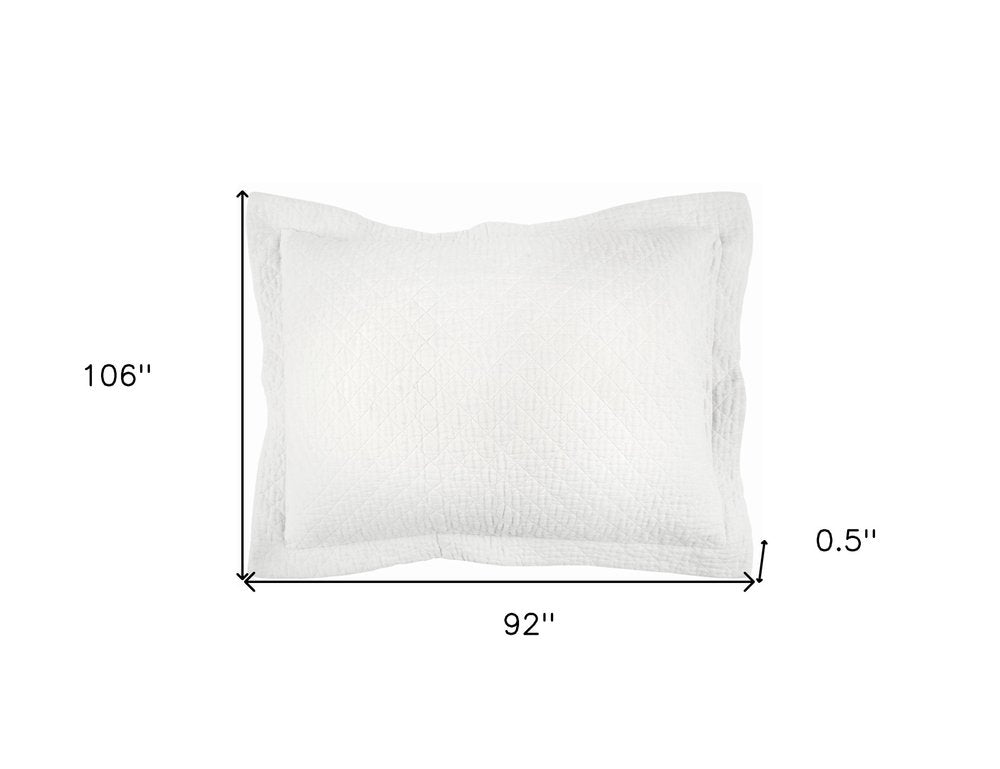 Elevate your bedroom aesthetic with the white checkered king quilt. This luxurious quilt is designed specifically for a king-sized bed, ensuring a perfect fit and an elegant look. Made from soft and breathable cotton, it provides ultimate comfort for restful nights. Its traditional style features a timeless checkered pattern in a crisp white color, blending seamlessly with various decor themes. The quilt comes complete with an included quilt, making it a versatile addition to your bedding collection. Transform your space into a serene sanctuary with this exquisite piece that combines functionality and style effortlessly. 106-inch h x 92-inch w x 0.5-inch d.